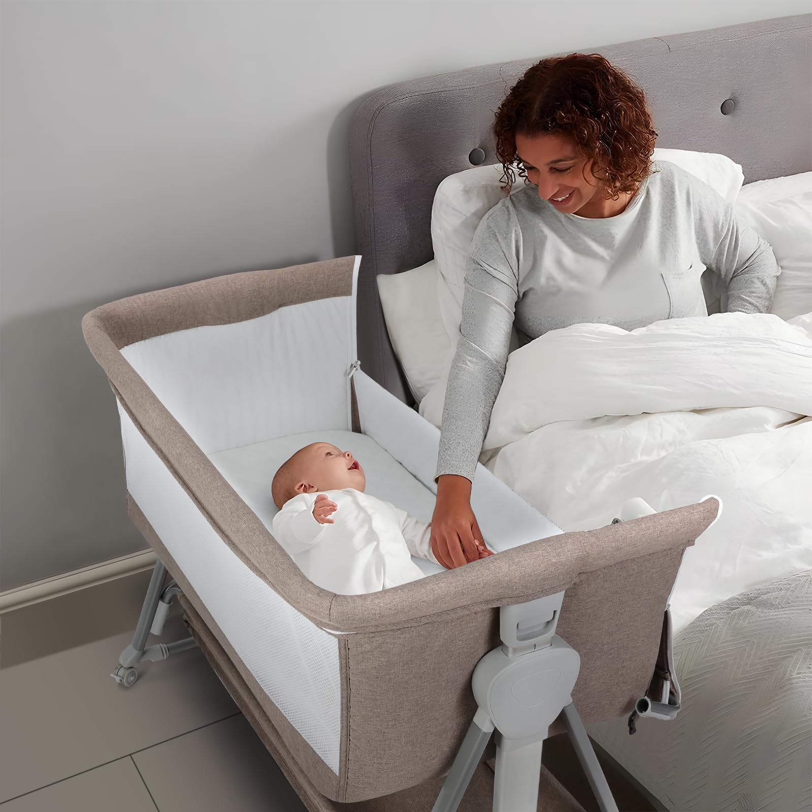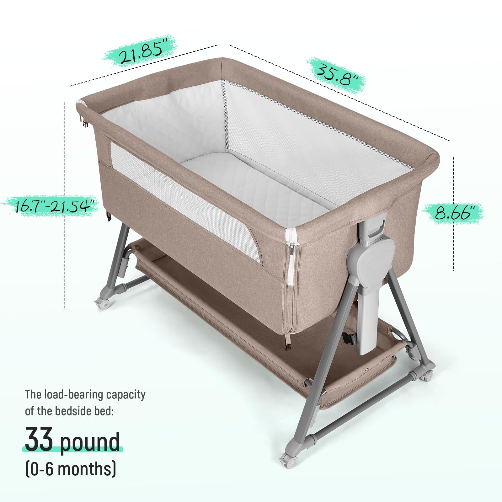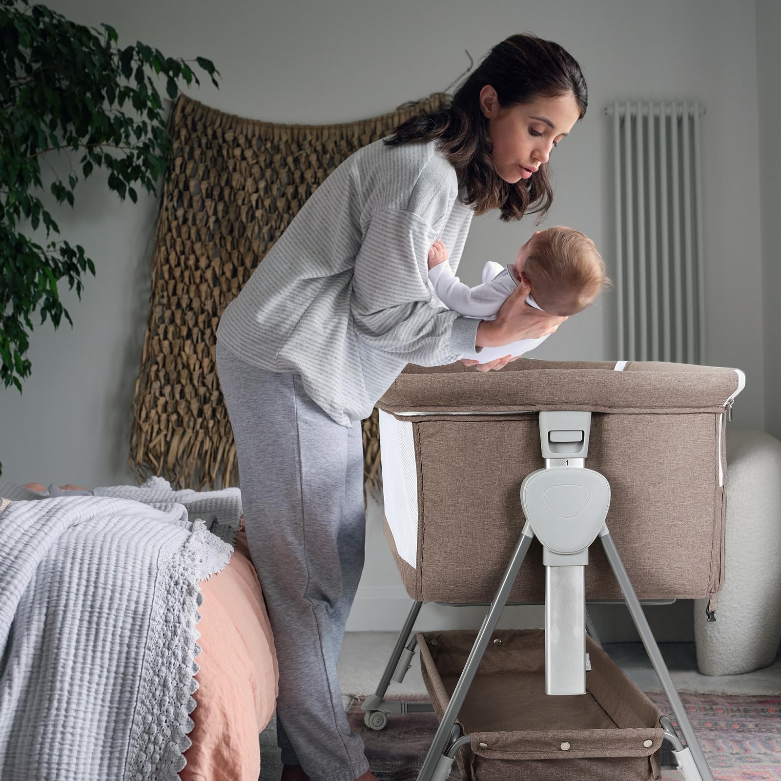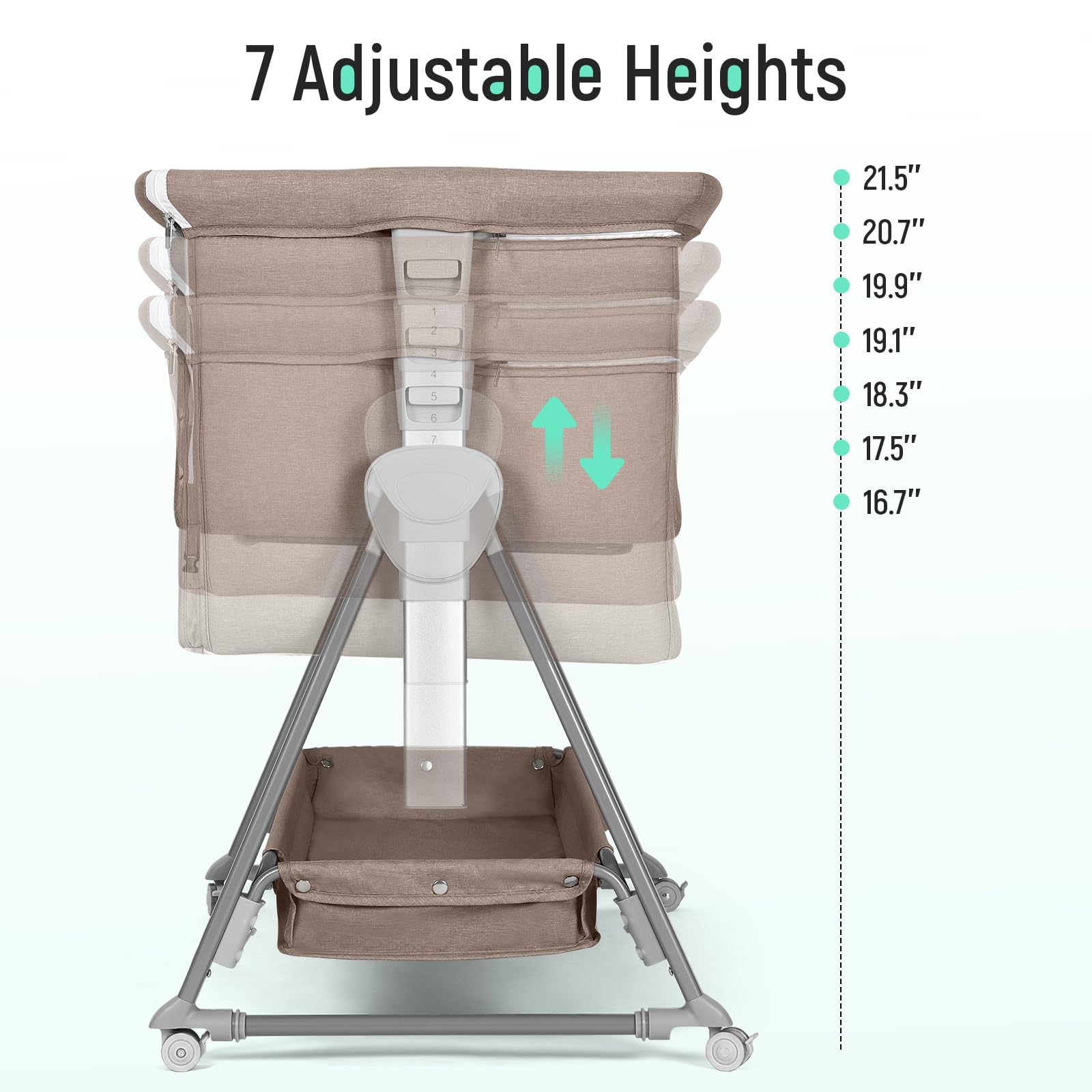 【7-Level Height Adjustment】Unlike standard 3-level or 4-level baby bassinet, Cowiewie offers 7 adjustable heights (16.7" to21.54"), precisely matching any bed height. The retractable side with a secure zipper ensures easy access, especially for nighttime feedings or post-C-section moms.