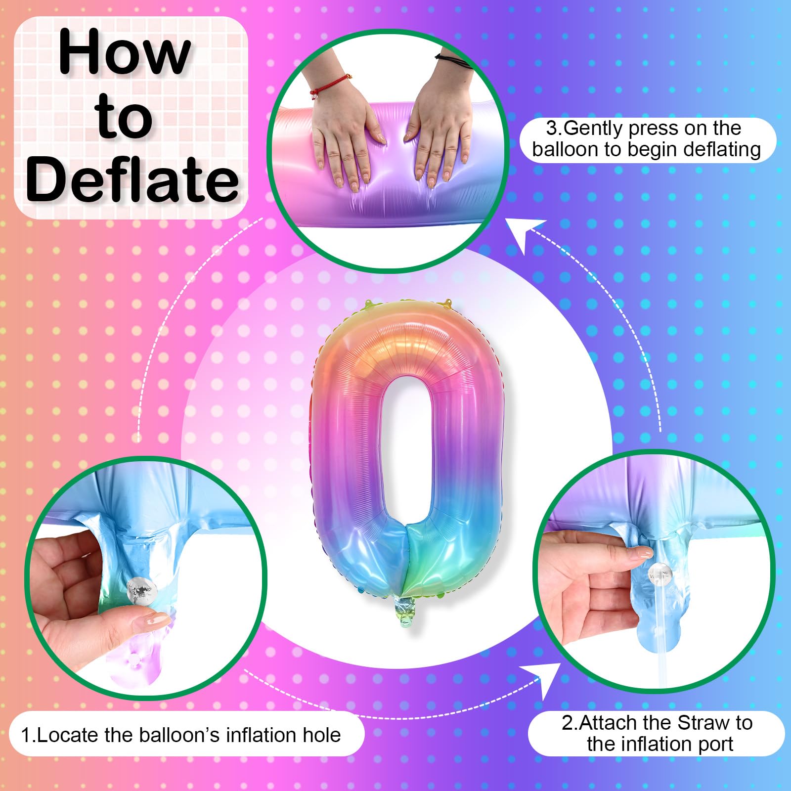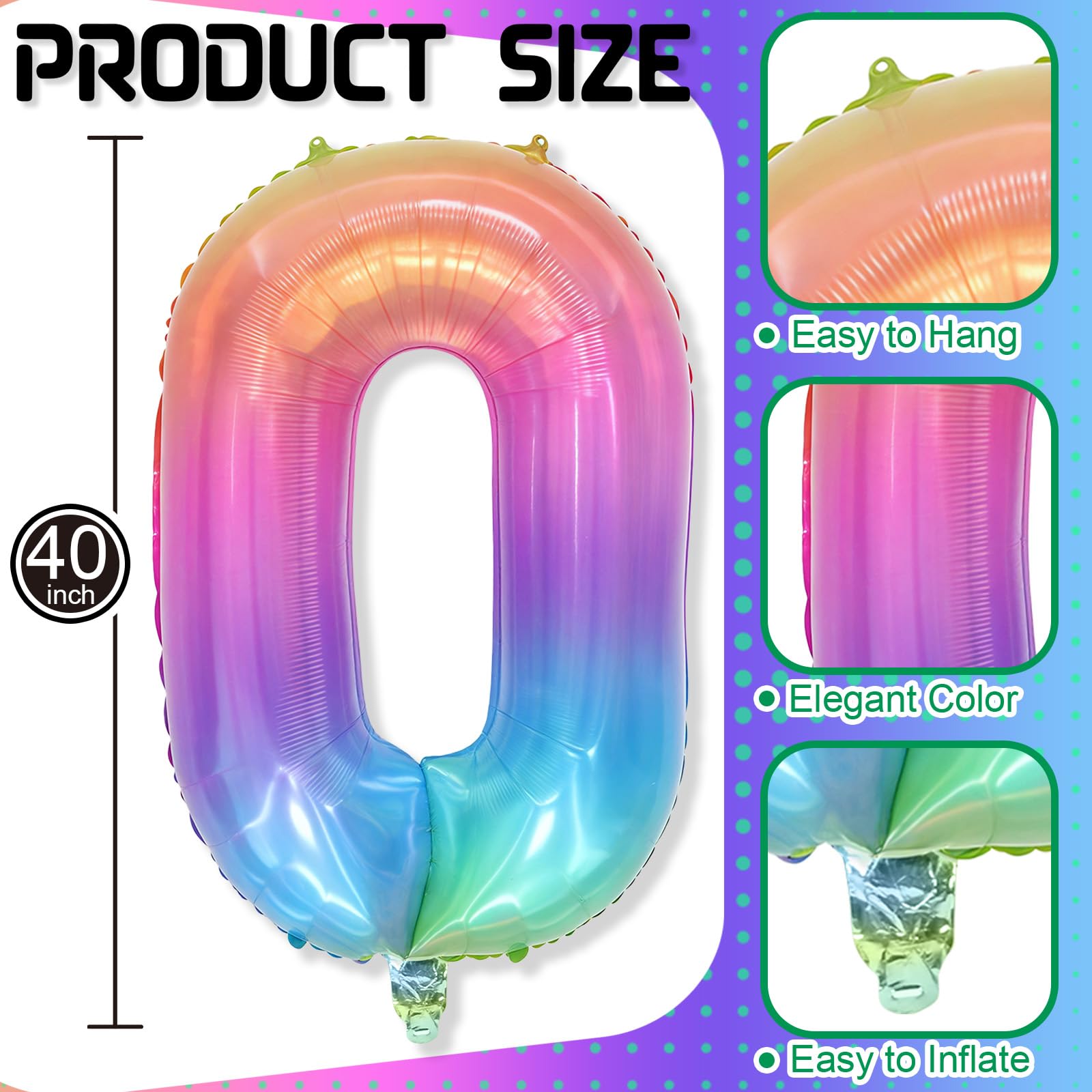 【Number 0 Balloon】: This 40 inch rainbow number foil balloon comes as a complete set, including one balloon numbers and a straw for easy inflation. Its large size ensures it stands out at party, creating a visually striking focal point to make your special occasion even more memorable.