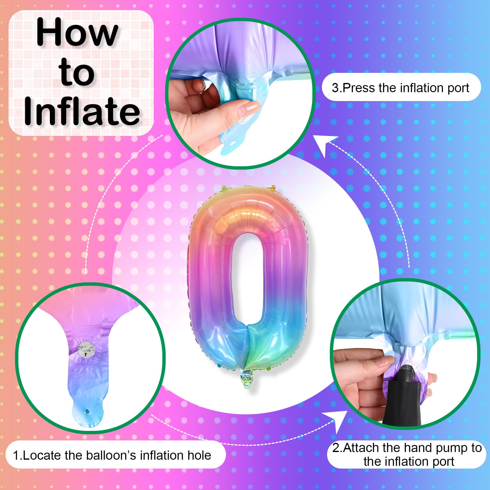 【Easy Inflation & Setup】: The giant light colorful number balloon is designed for quick and easy inflation with either helium or air. It features a self inflating valve for convenient use, allowing you to quickly set up and enjoy the decorations without any hassle. For optimal use, inflate the balloon to 90% capacity only to prevent over-inflation and bursting.