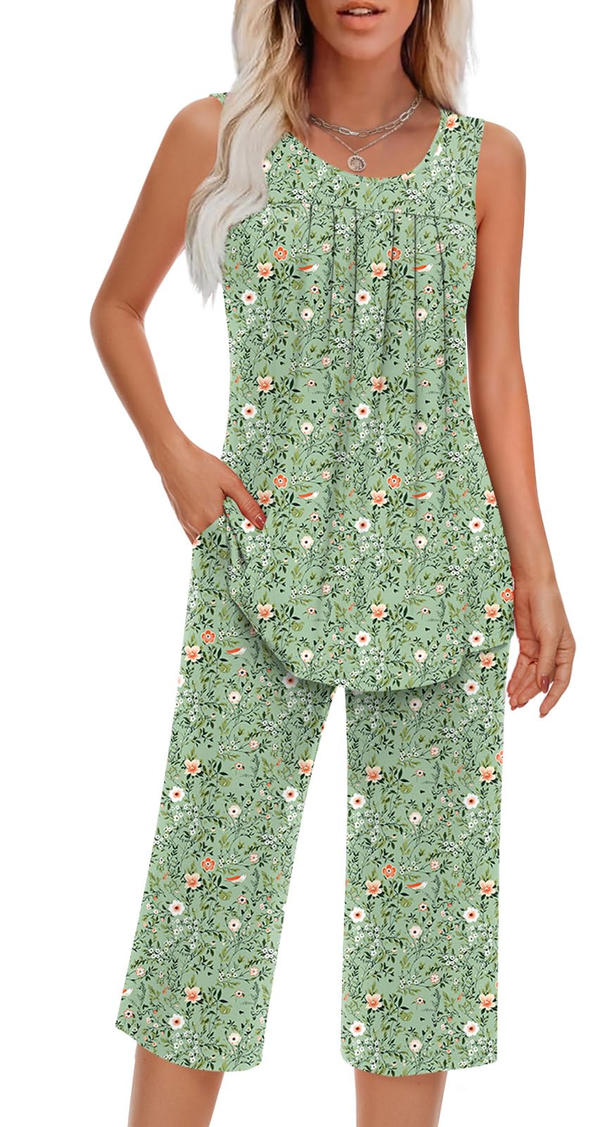 Occasion: This lightweight and comfortable women's summer sleeveless set can be used in various occasions. You can wear it as home clothes to sleep or cook; You can also wear it to go out for a dog walk or morning run, of course, this is also a good set for doing yoga exercises