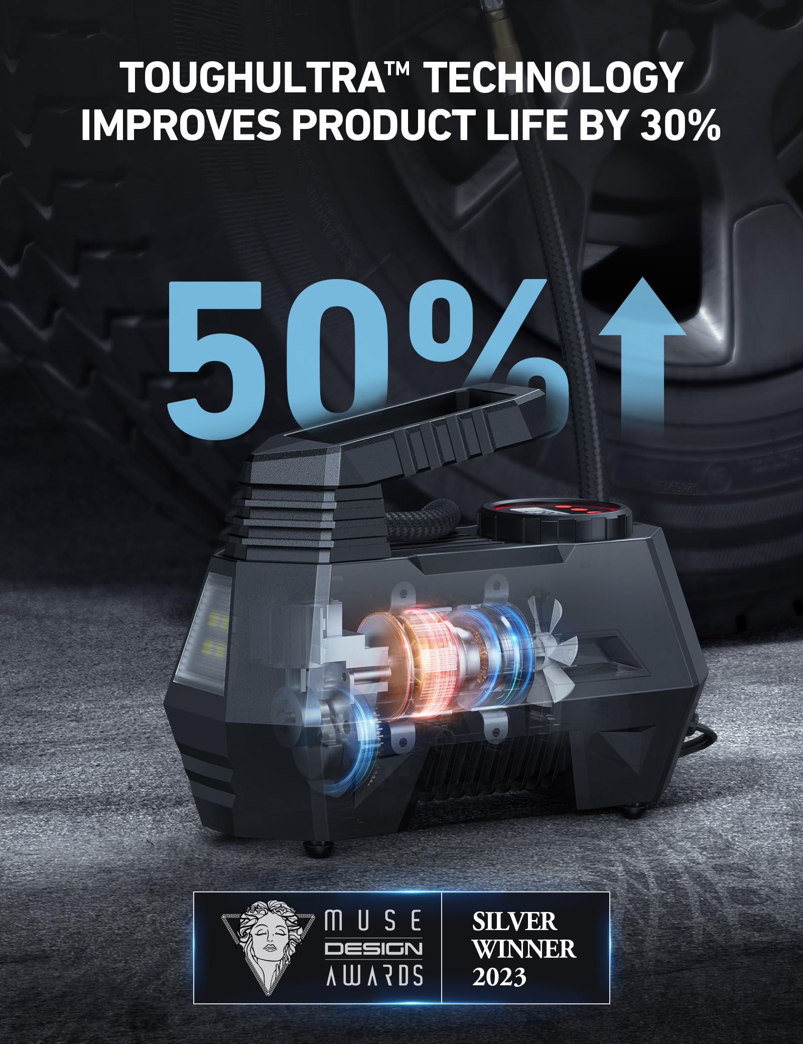 EASY NIGHTTIME USE: Equipped with a backlit screen and a flashlight, this tire inflator brings convenient use, even in dim environments. Its independent LED Button enables one-press flashlight operation. Great gifts for men and women.