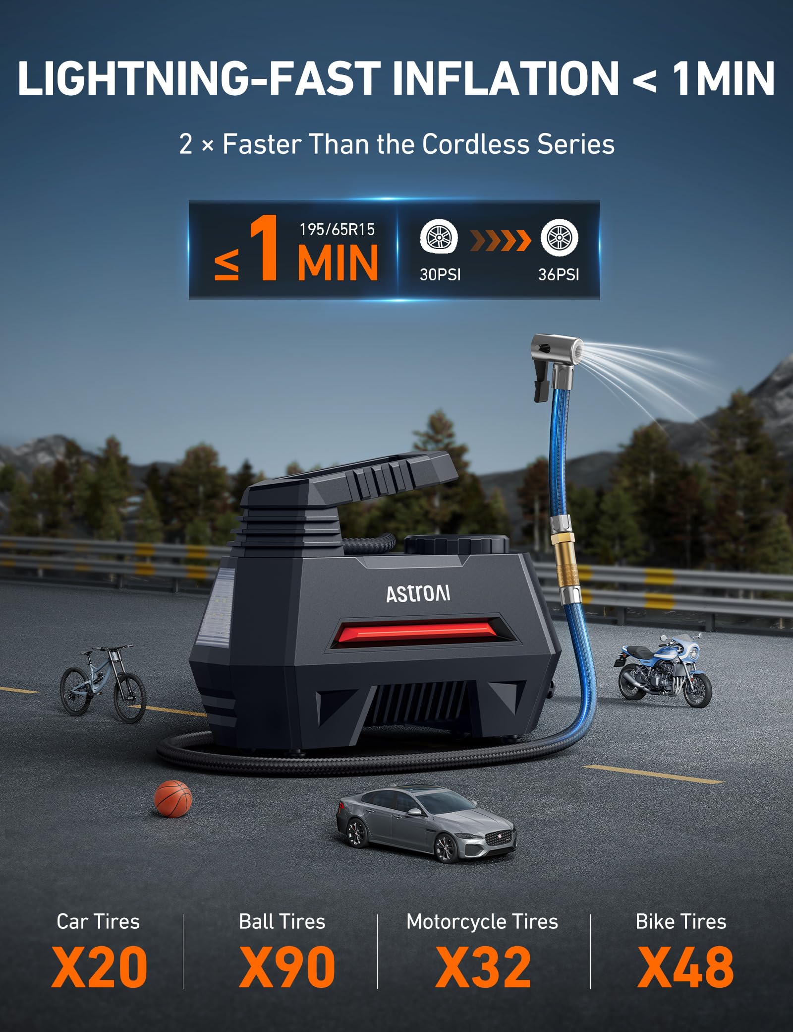 SMART PRESET & AUTO OFF: The tire inflator’s digital screen provides accurate readouts and 4 pressure units to choose from while its independent buttons allow for intuitive control. You can easily preset the tire pressure and not worry about constantly monitoring it, this smart inflator will automatically shut off once it reaches the desired pressure.