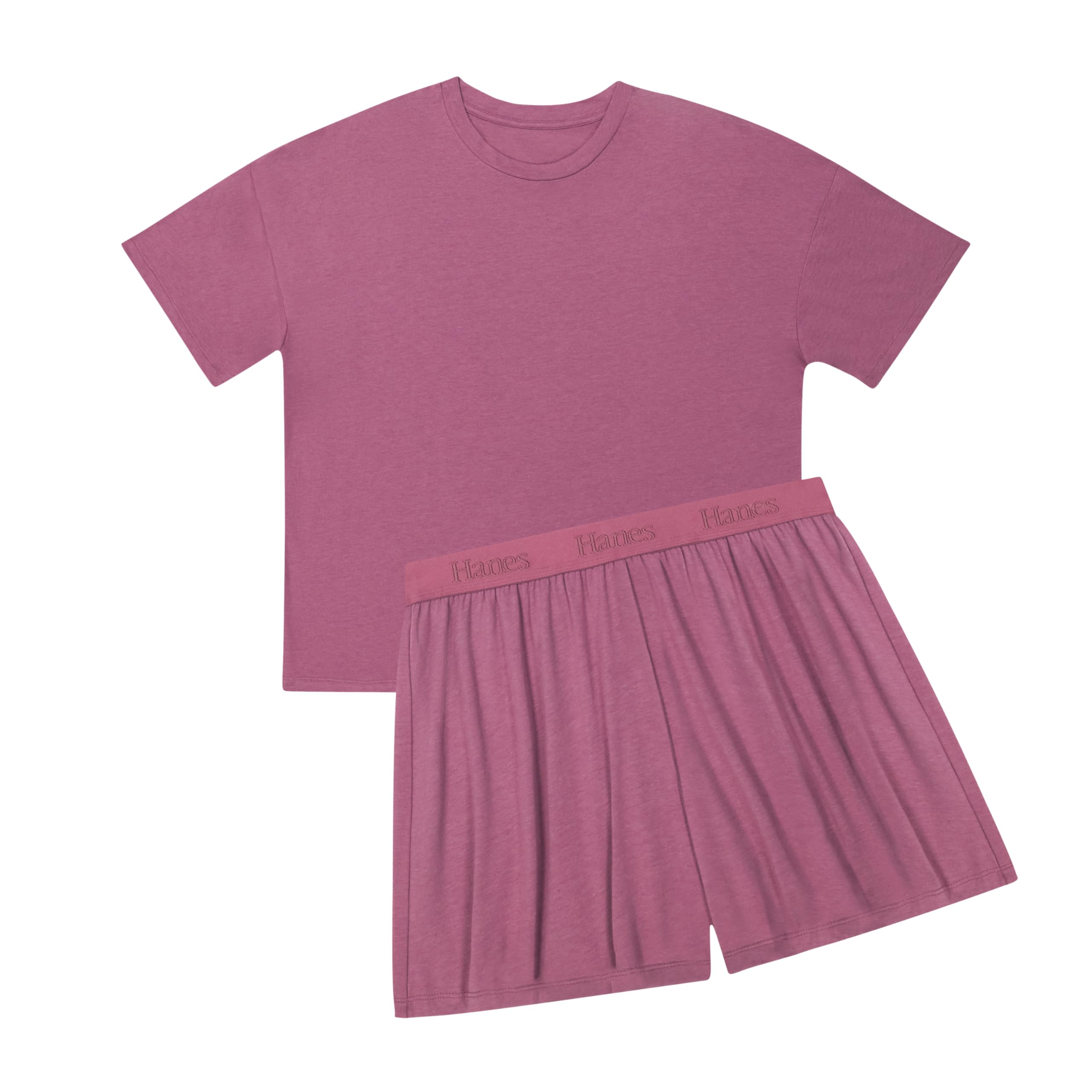 TWO PIECE SET LOUNGWEAR - Boxy tee features a classic crew neckline, while the sleep shorts offer a luxe, tonal Hanes soft-stretch elastic waistband - allowing you to move with ease.