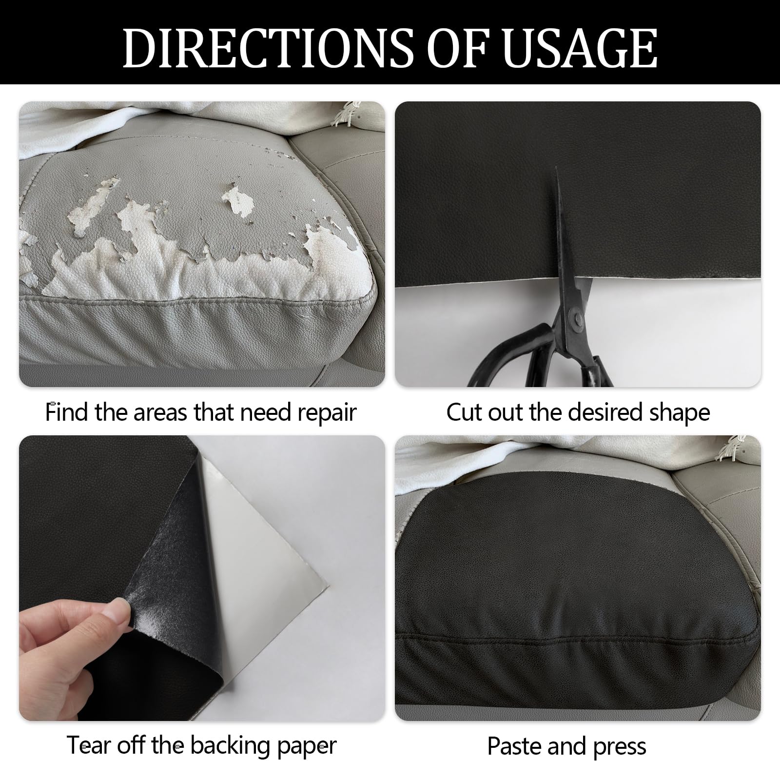 Wide Application Leather Repair Tape: Our self-adhesive leather repair kit can quickly cover cracks, holes, burns, scratches, and other defects on leather, vinyl and upholstery such as sofas, couch, furniture, armchair, shoes and car cushions, also useful for decor projects and crafts too
