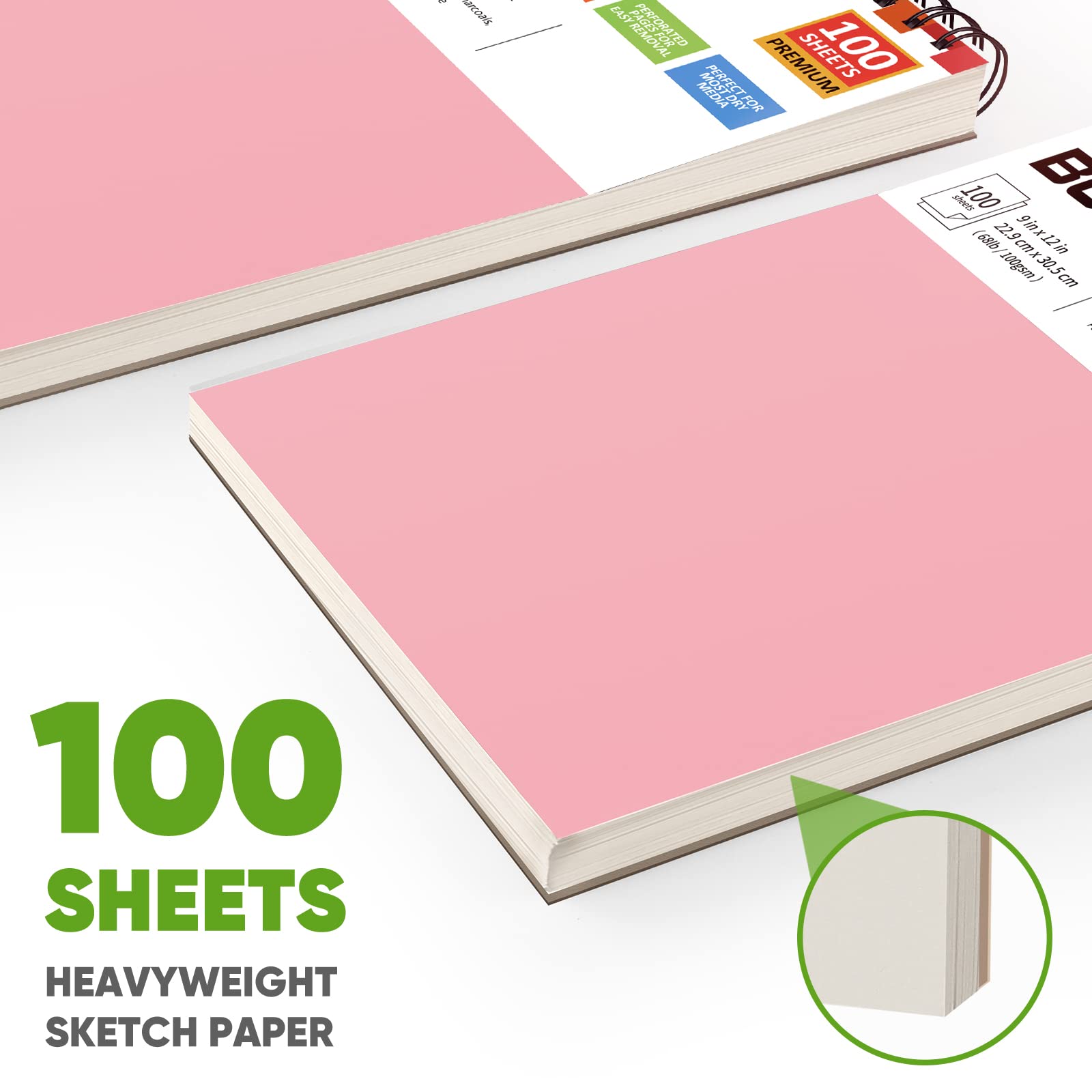 【Sturdy spiral bound on the top and micro-perforated paper】The top spiral binding is nice and friendly for both left-handed and right-handed people, allows for pad to lay flat when opened and for easy page-turning. With the think cardstock cover and heavy backboard for extra protection, it will keep the paper in good shape all the time, provide better drawing & writing experience. Every page is micro-perforated, allows you to easily remove single page.