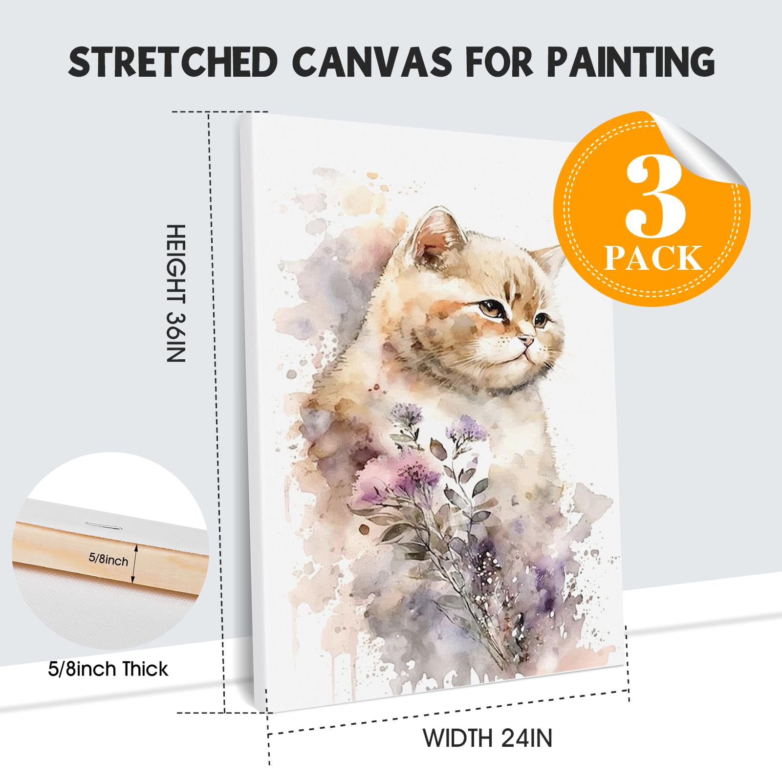 Wood Frame:The 24x36 canvas for painting is nailed firmly to the pinewood frame, extra cross bar to ensure the perfect steadiness, 5/8 inch thick frame structure,It's sturdy and doesn't deform easily. The high quality will enhance your painting experience.