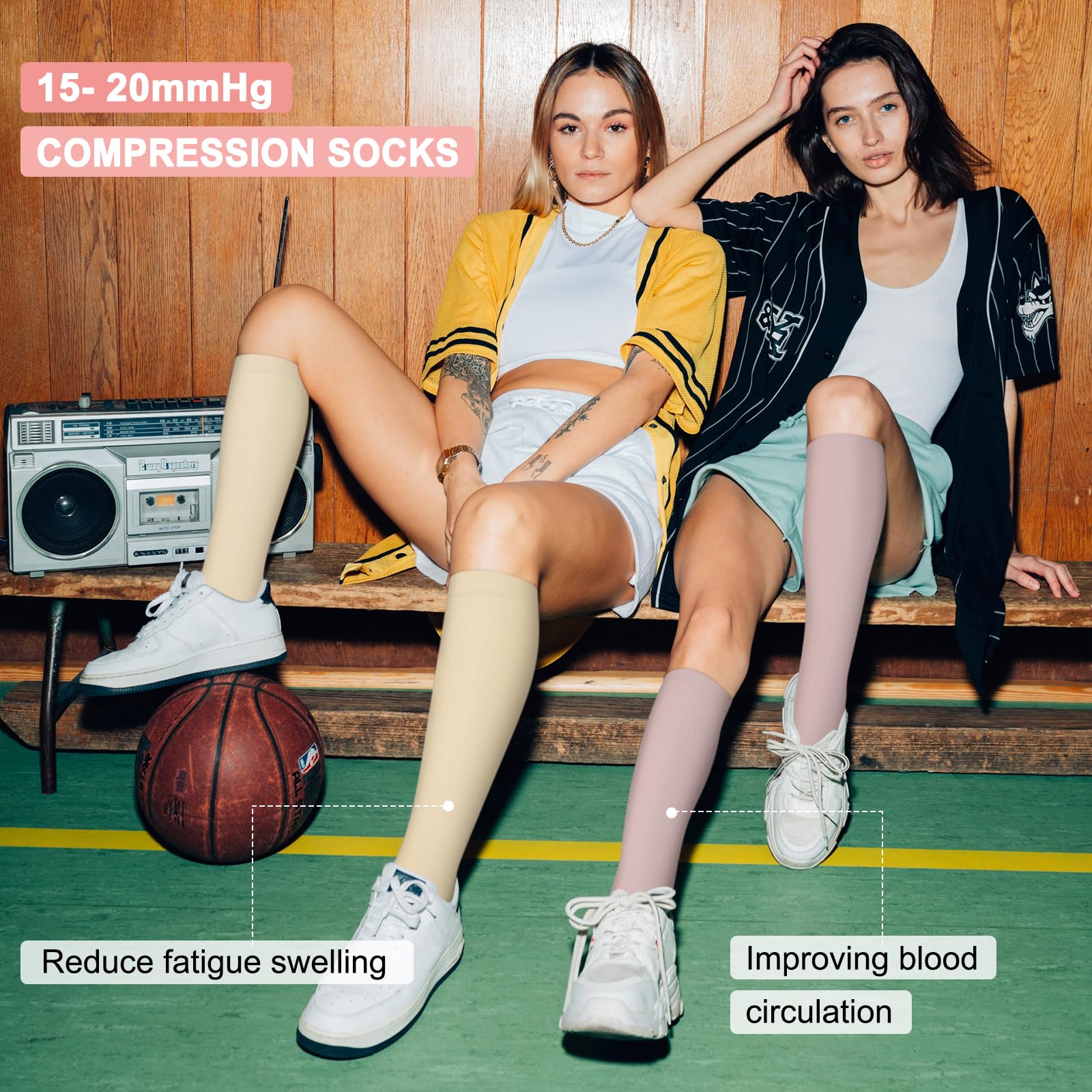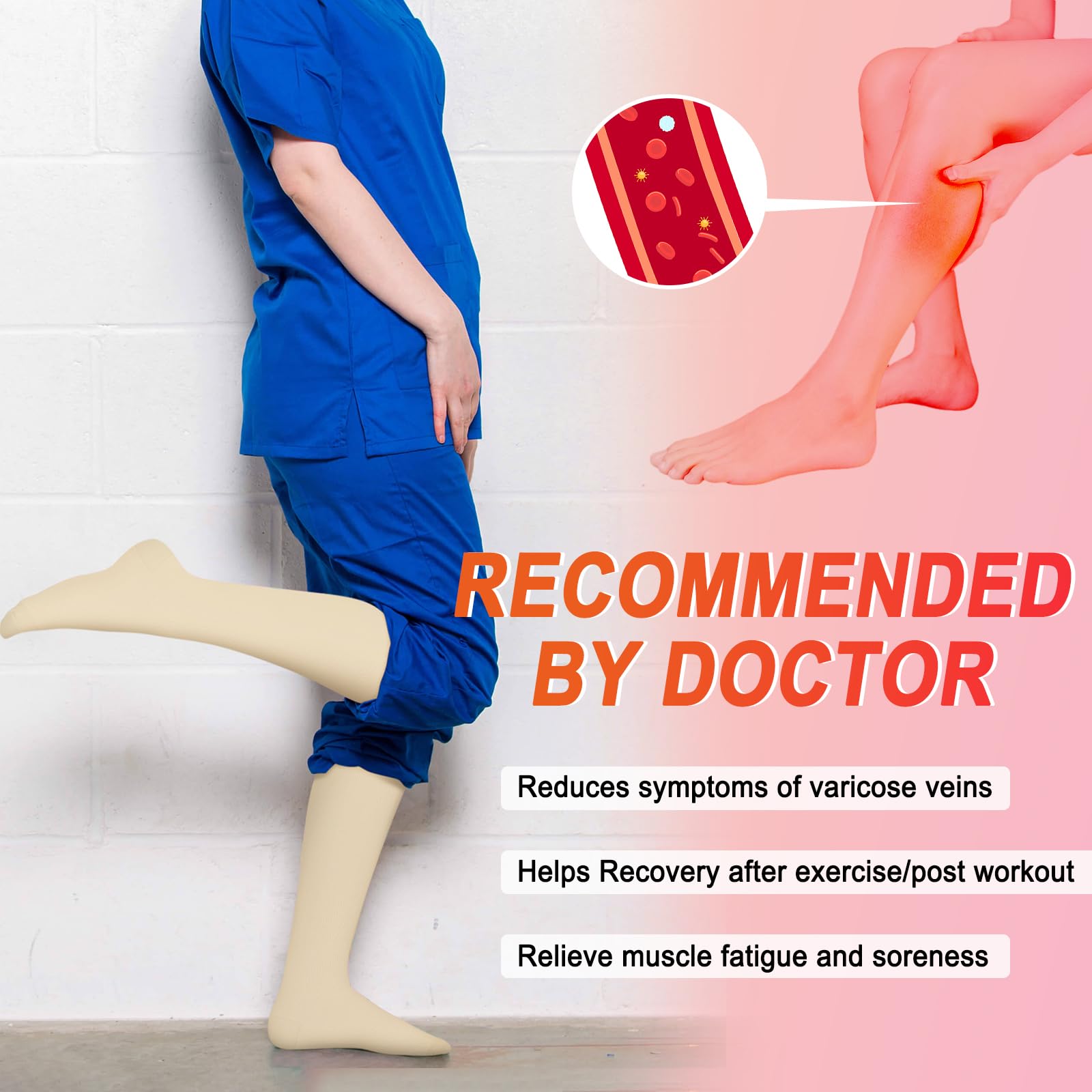 Compression for Optimal Support – These socks are engineered to provide compression that helps to reduce swelling, improve circulation, and relieve varicose veins. Made from nylon, they combine strength and flexibility, providing consistent compression throughout the day. Whether you’re recovering from a workout or standing for hours, these socks will provide immediate relief and comfort, making them perfect for both high-impact sports and long work shifts.