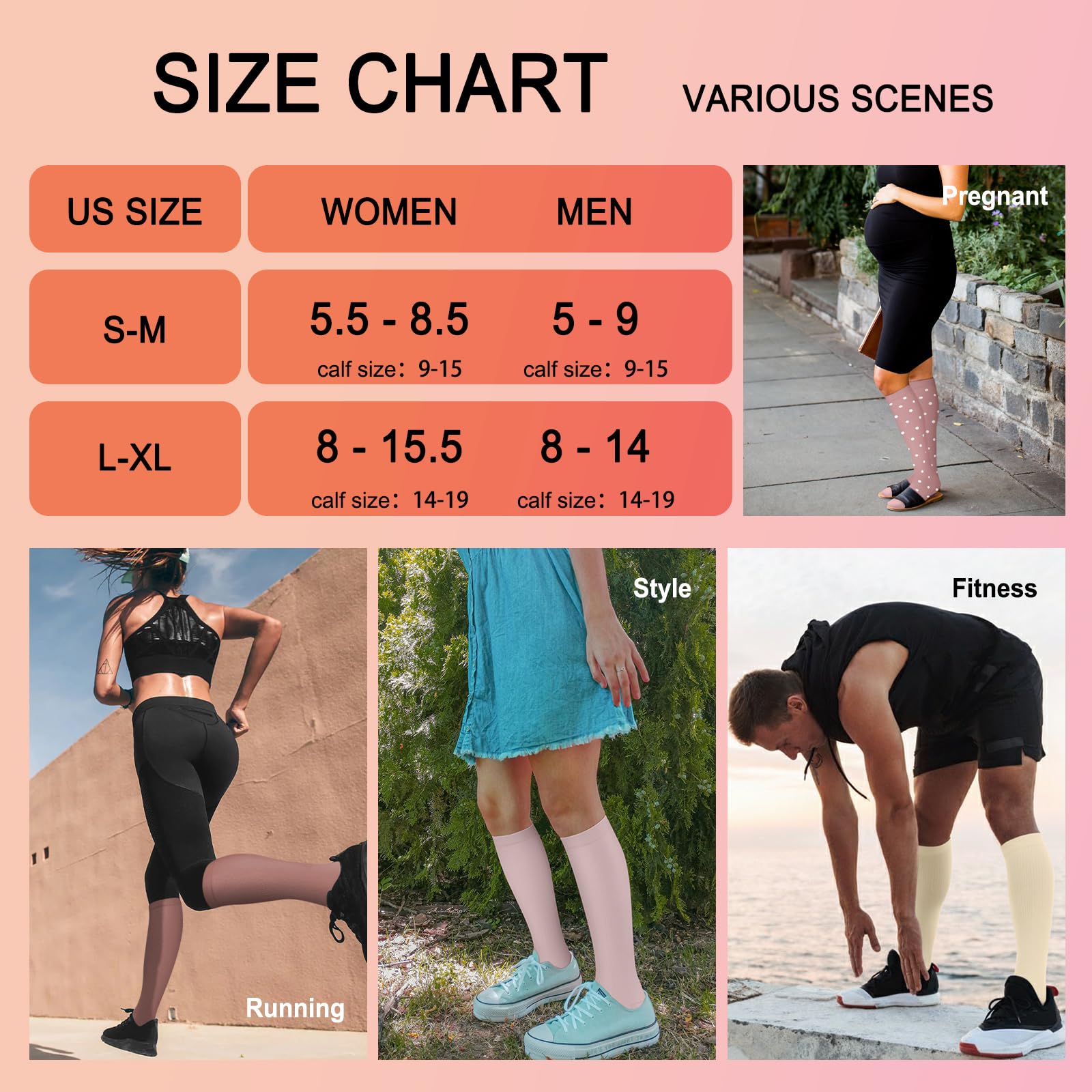 Perfect for Every Occasion – From running, sports, and pregnancy to work and travel, these compression socks are versatile enough to meet your needs. They help to reduce swelling, improve circulation, and support blood flow. Whether you're on a flight, in the gym, or working a long shift, you'll experience the difference in comfort and performance with these socks.