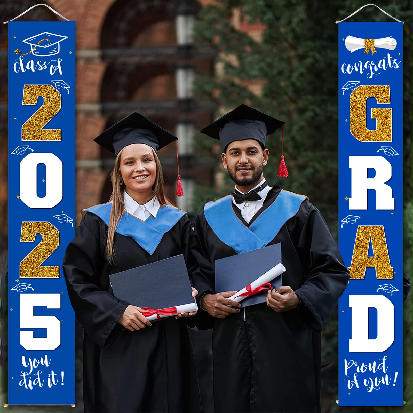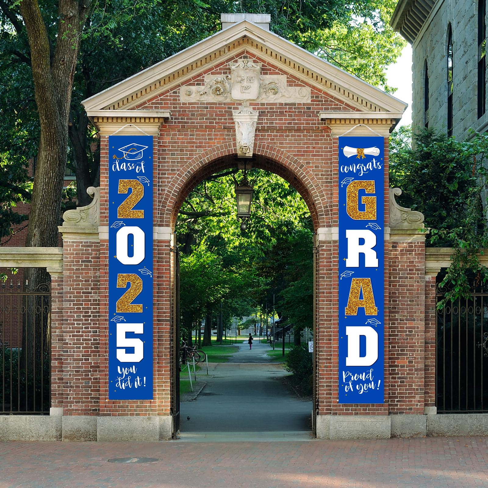 Graduation Decoration 2025: 1 Class of 2025 banner and 1 congrats GRAD banner. Size: each is 11.8" x 70.87", fits the door perfectly.