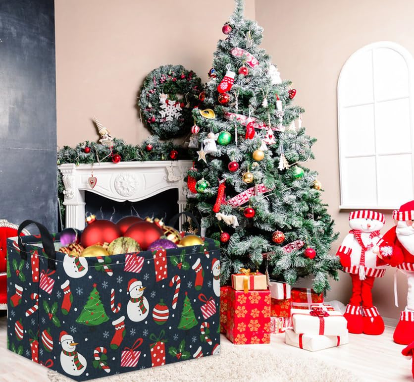 Durable Material:Our cute christmas baskets are made of canvas fabric+inside is lined with waterproof PE coating, lightweight and simple for carrying,reusable, not easy to break down or fade.It can be wiped clean with a damp cloth or with a washing machine.