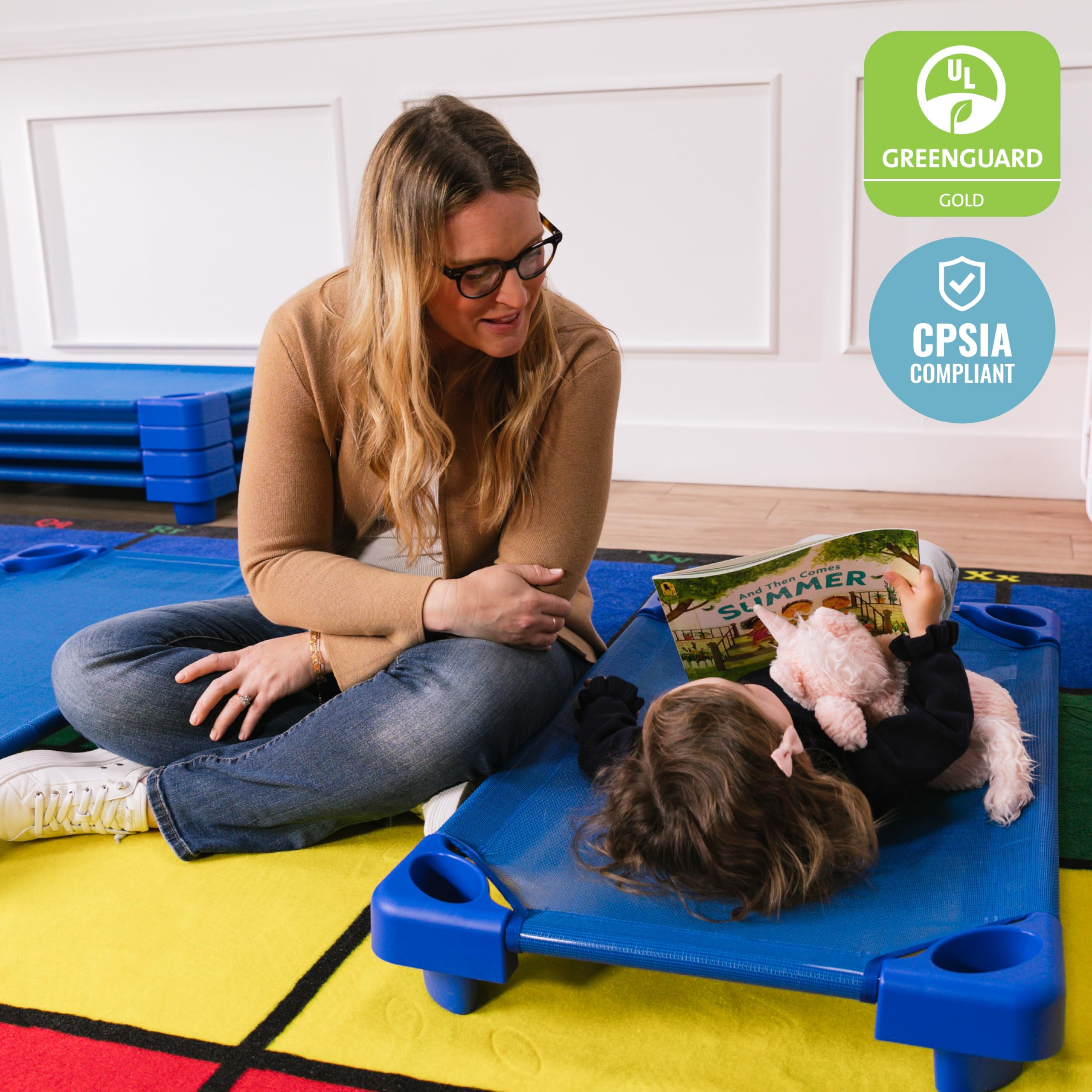 Certified Safe: Universal cot carrier and cots for kids are UL GREENGUARD Gold Certified for low VOCs and feature rounded edges for added safety, daycare cots are CPSIA compliant