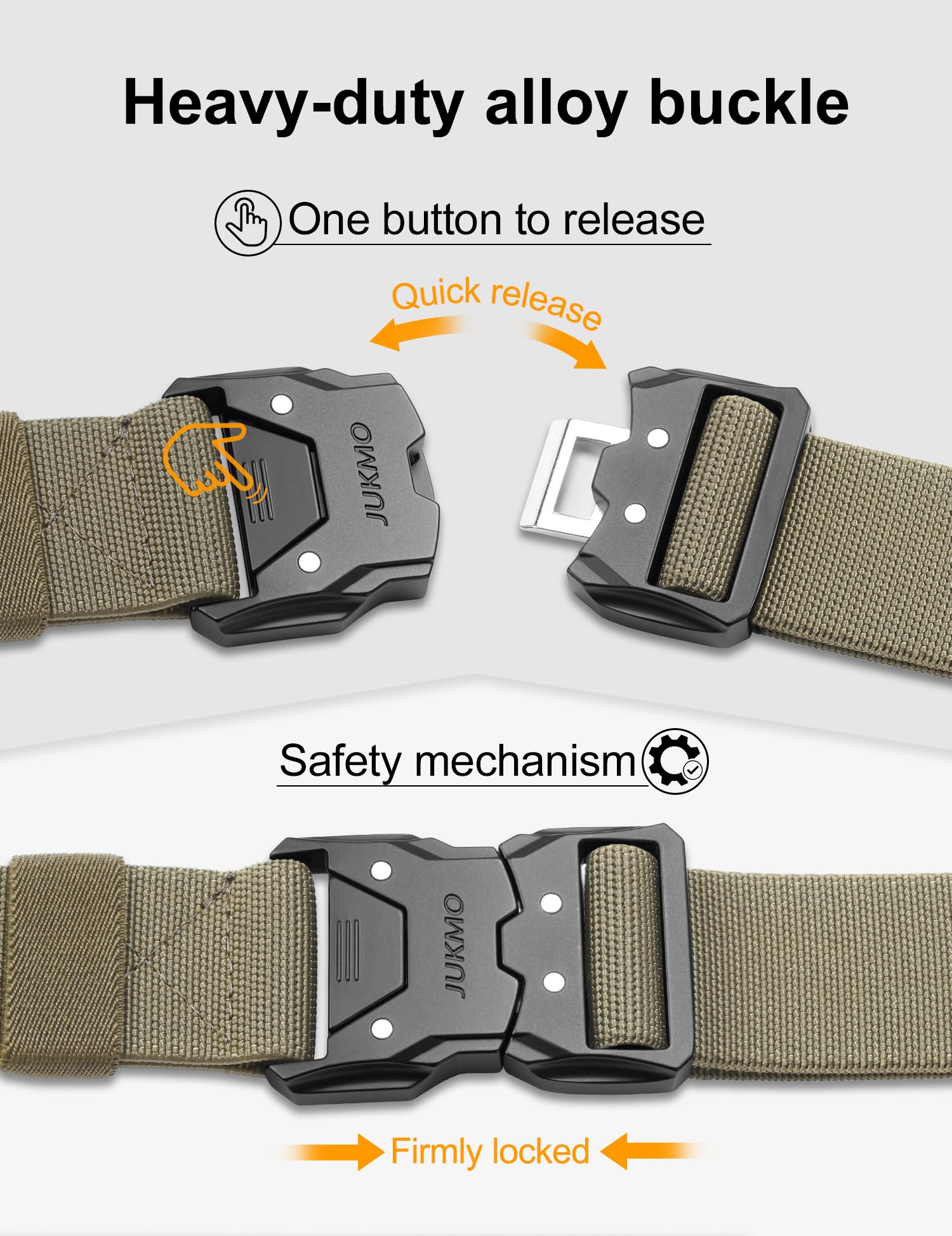 ONE BUTTON QUICK RELEASE BUCKLE:The crafted heavy-duty buckle is made of zinc alloy. As long as you push the button on the buckle, the buckle would release instantly. It is super convenient to release your pants for doing whatever you want to do. You would never meet a belt so quick convenient like this. The designed buckle has very strong load-bearing capacity, which can meet your different wearing requirements
