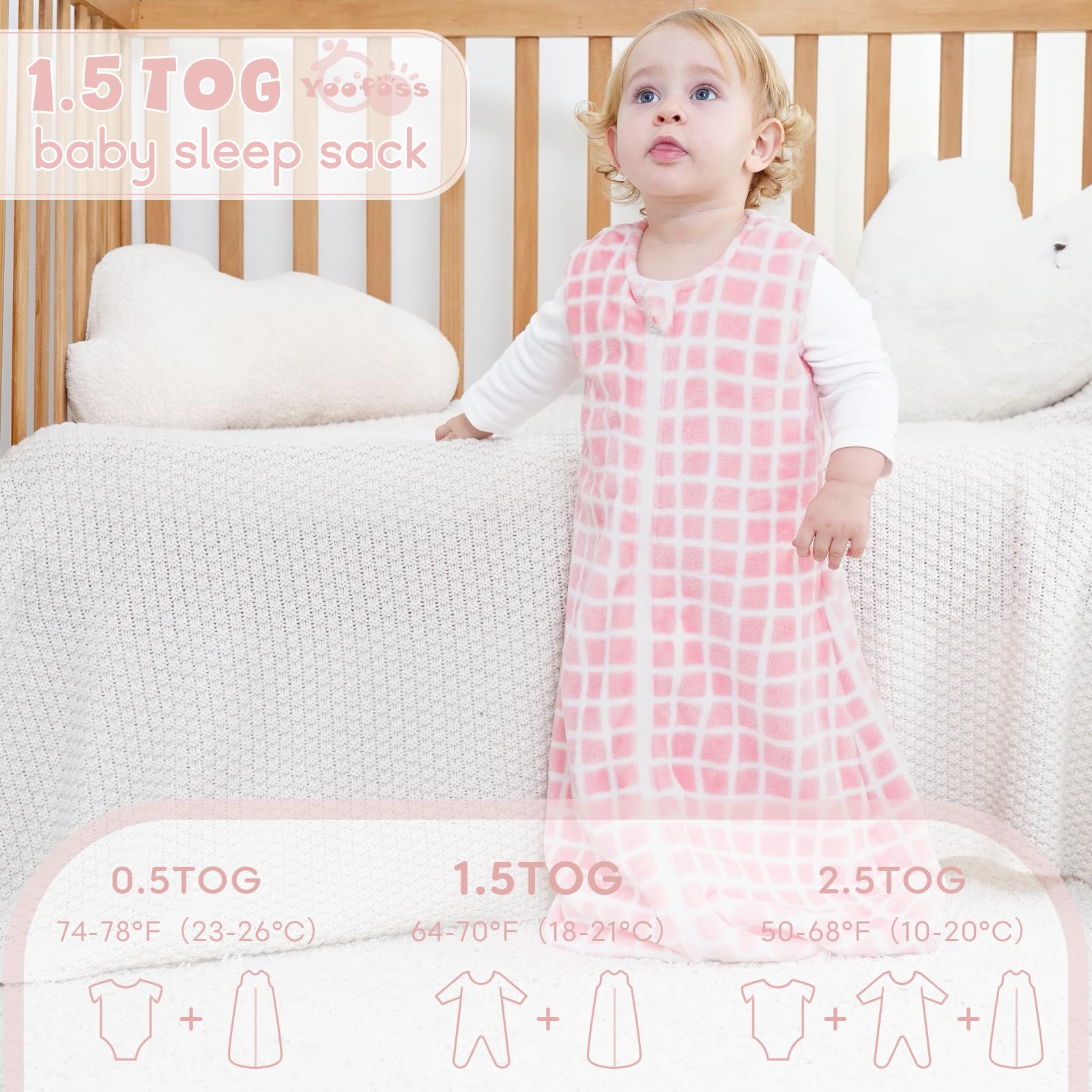 Soft and Warm - Made of 100% polyester, super soft, smooth and lightweight, creating warm and cozy embrace for baby. Fleece sleep sack 1.5 Tog is suiable for moderate temperatures from 69 to 73°F as an ideal option for autumn, early winter and spring or taking a nap in air-conditioned rooms during the summer.