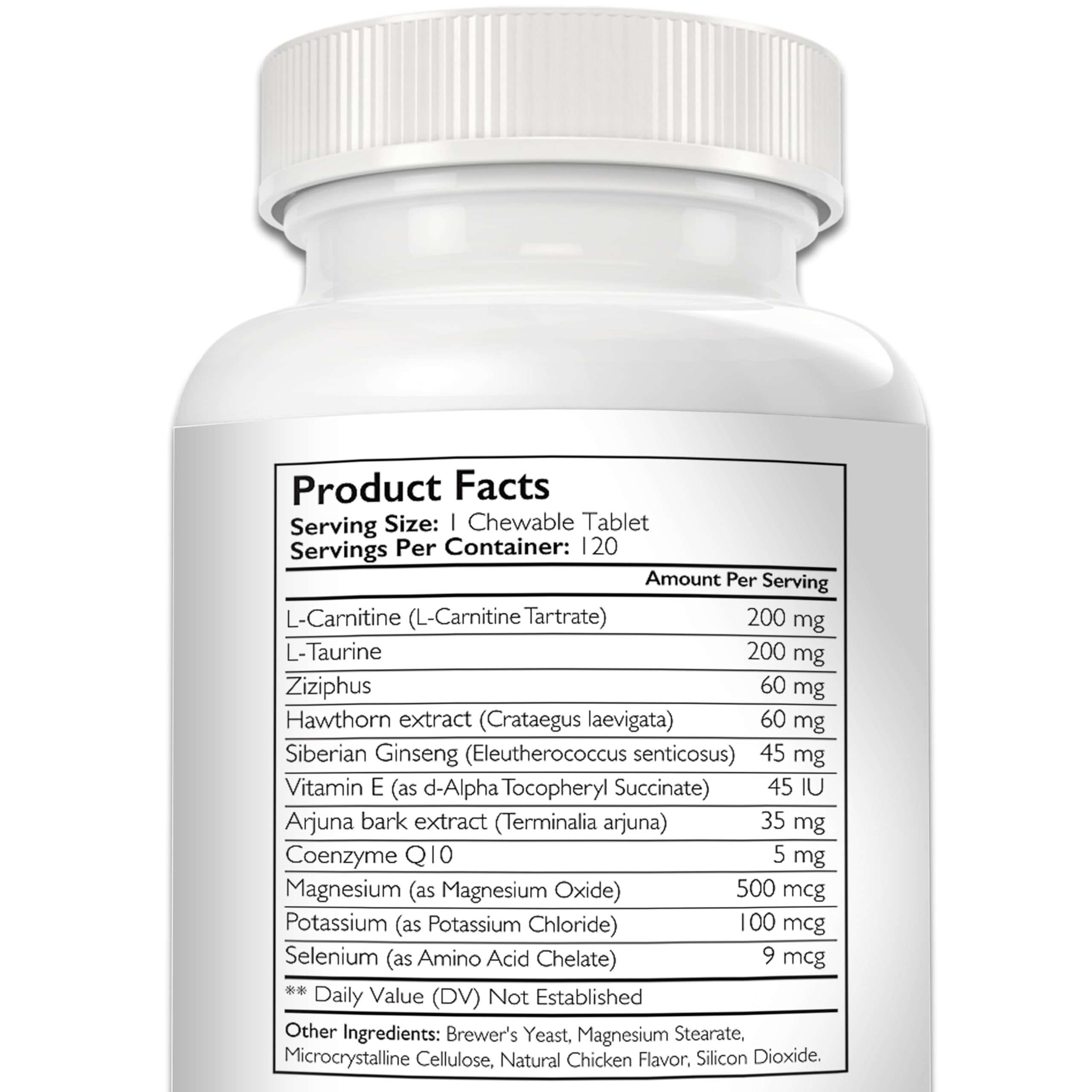 Highly rated supplement to support cardiovascular function in dogs: 365 day guarantee; if you are not happy with our dog heart support tablets, simply contact us for a full refund; we want you to be completely satisfied with our premium supplement; plenty of studies have shown potential positive cardiovascular effects associated with consumption of key ingredients in our supplement, such as taurine, carnitine, ziziphus, ginseng and arjuna and we have put them all together in a tasty chewable
