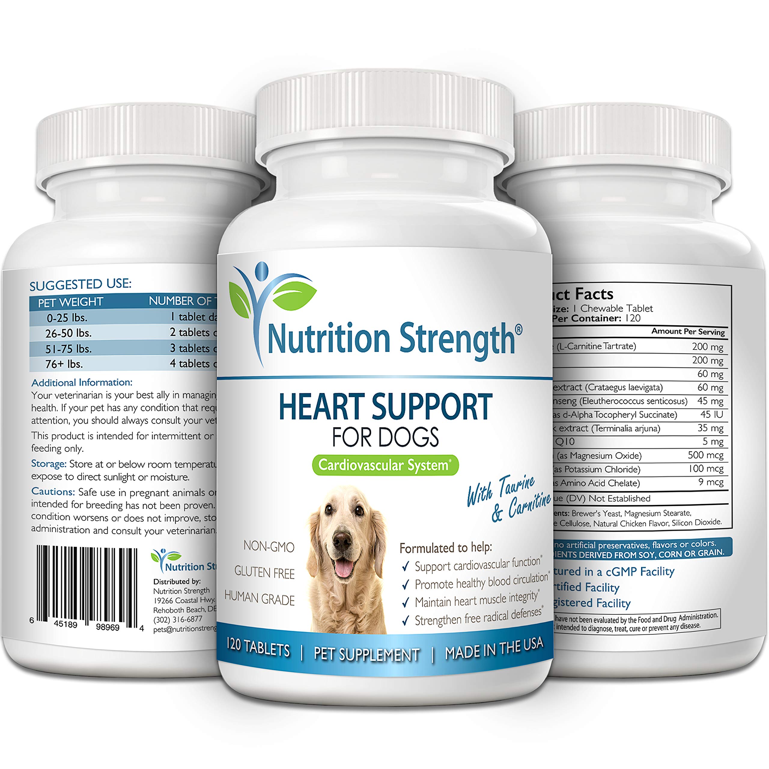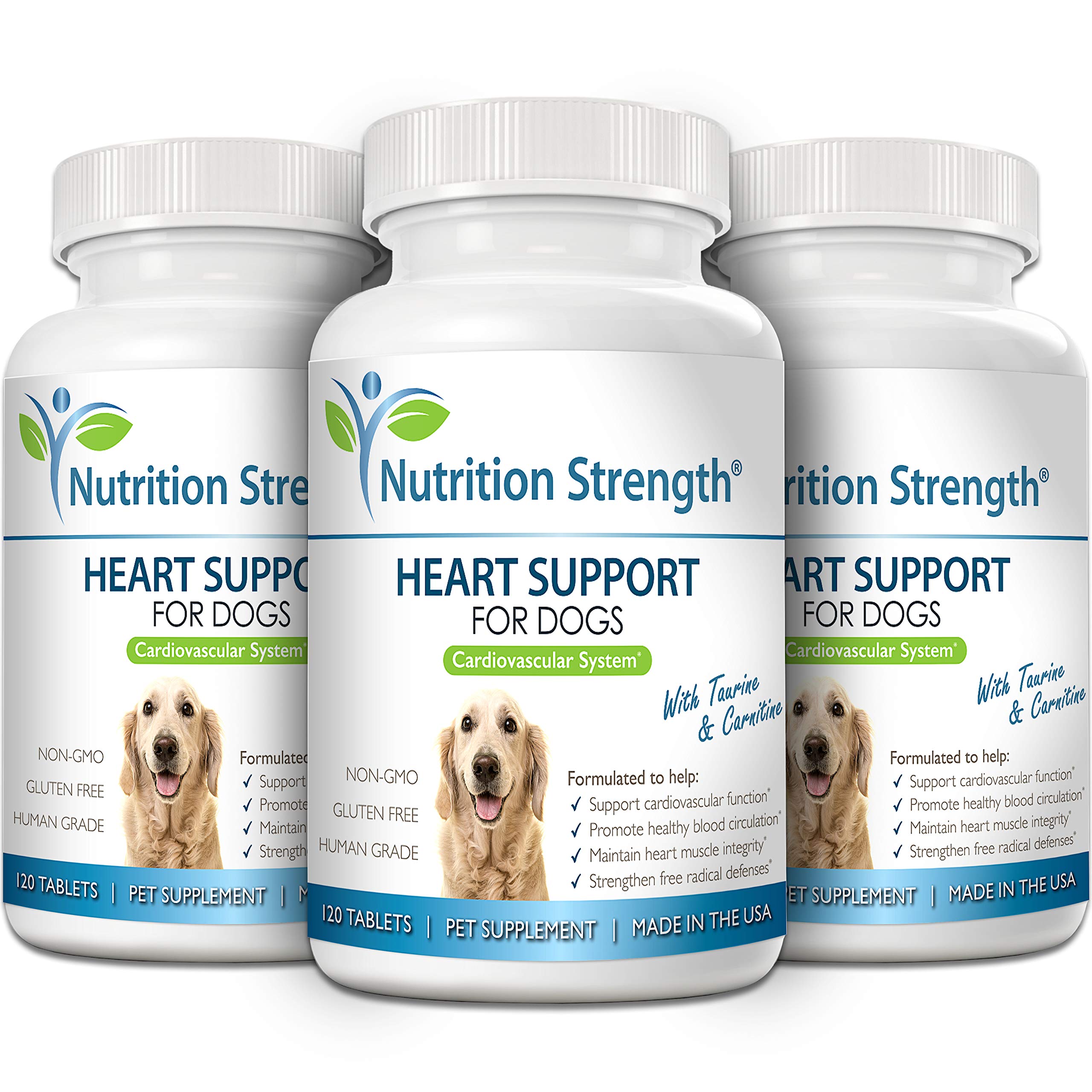 Made in the USA: Nutrition Strength's heart support for dogs with taurine and carnitine, promote blood circulation, support cardiovascular function, heart muscle integrity and free radical defenses is human grade; our premium canine heart tablets meet the strictest animal supplement manufacturing guidelines, to guarantee your pet's safety, and are made with carefully selected, high quality ingredients for optimal results