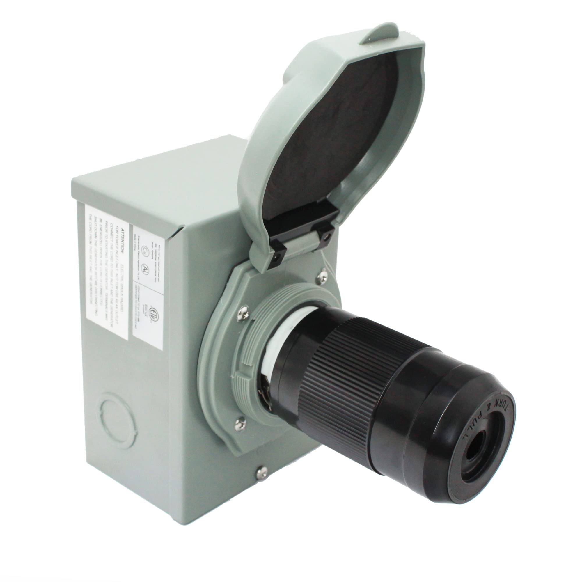 Heavy-duty power cable plug for use with generators, Use Exclusive Perma-Lock mechanism helps capitalize on safety in the outdoors.