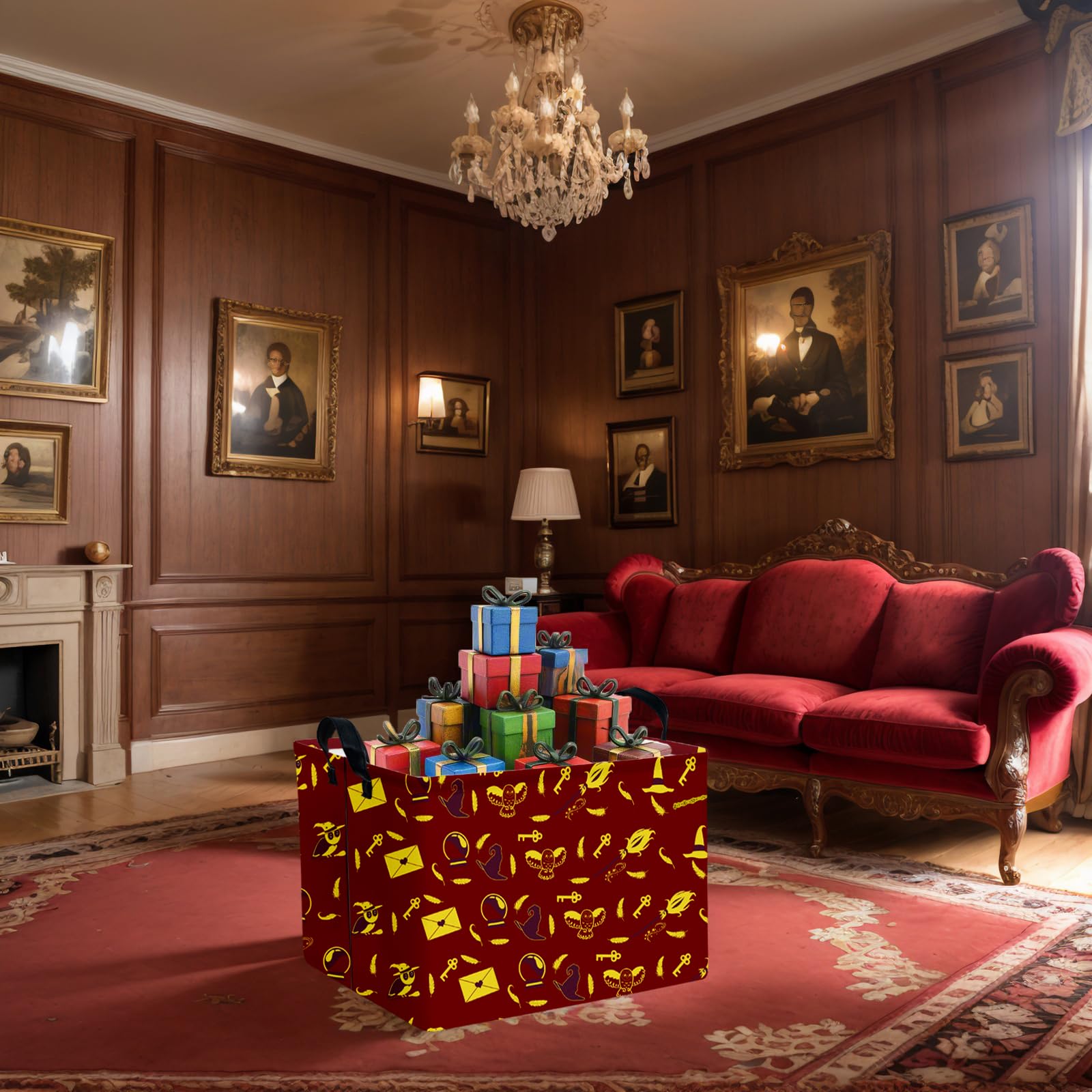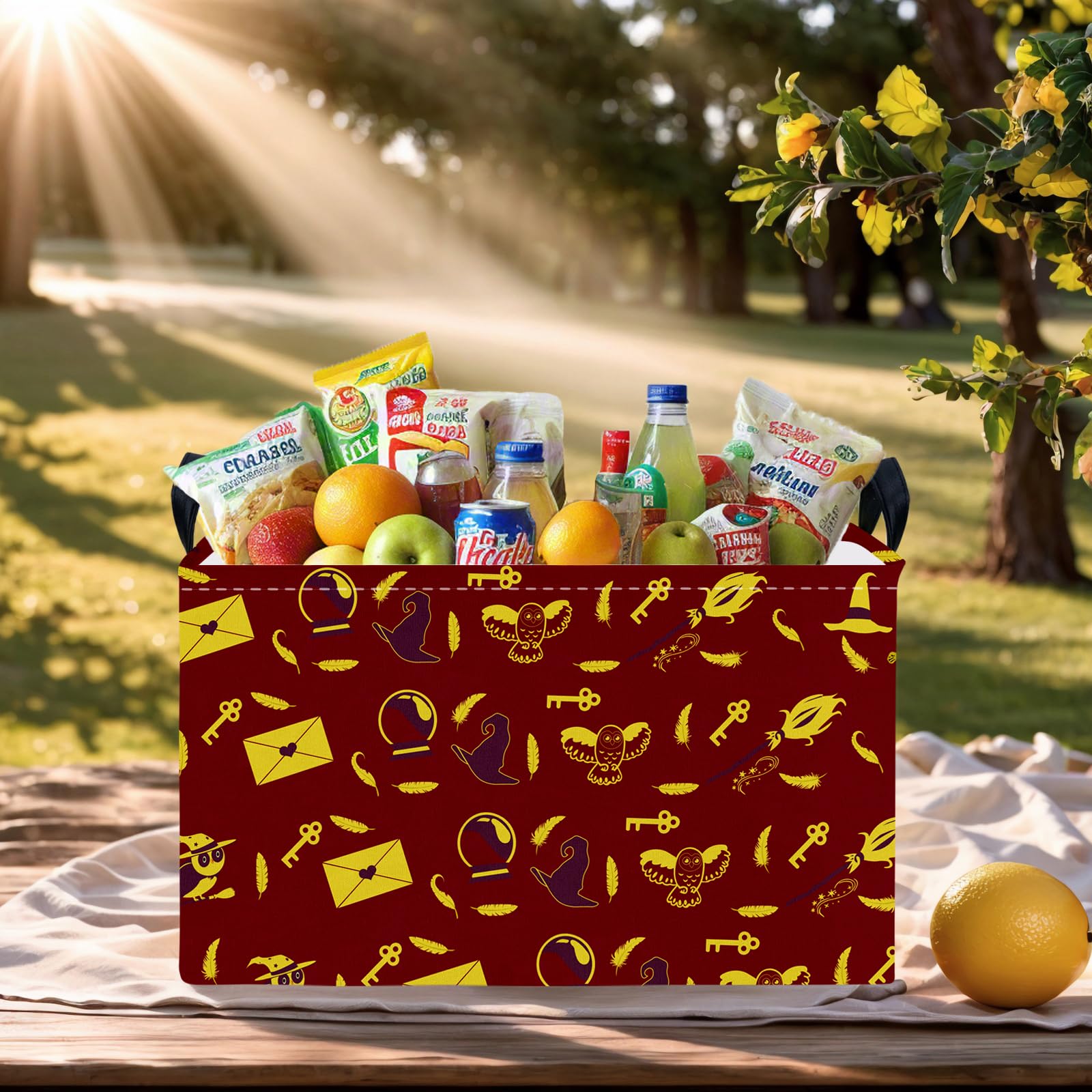 Enchanting Magic-Themed Design: This Retro Red Baby Basket is a delightful addition to any nursery, featuring whimsical elements of a magic hat, wand, book, and broomstick. The charming and mysterious design adds a touch of fun and wonder to your little one's space, making it the perfect baby hamper for nursery.