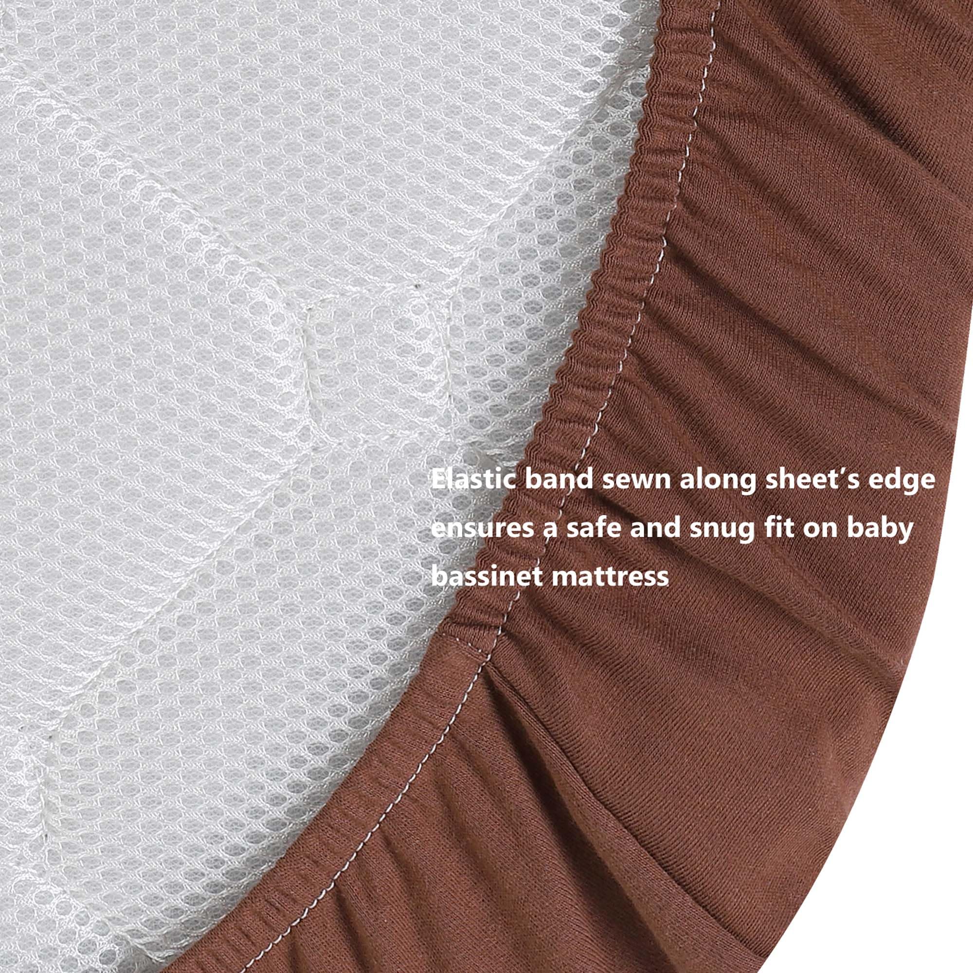 Each bassinet mattress cover is sewn premium quality elastic band at the bottom for securing the baby bassinet mattress sheets in place, it's for baby's safe sleeping.
