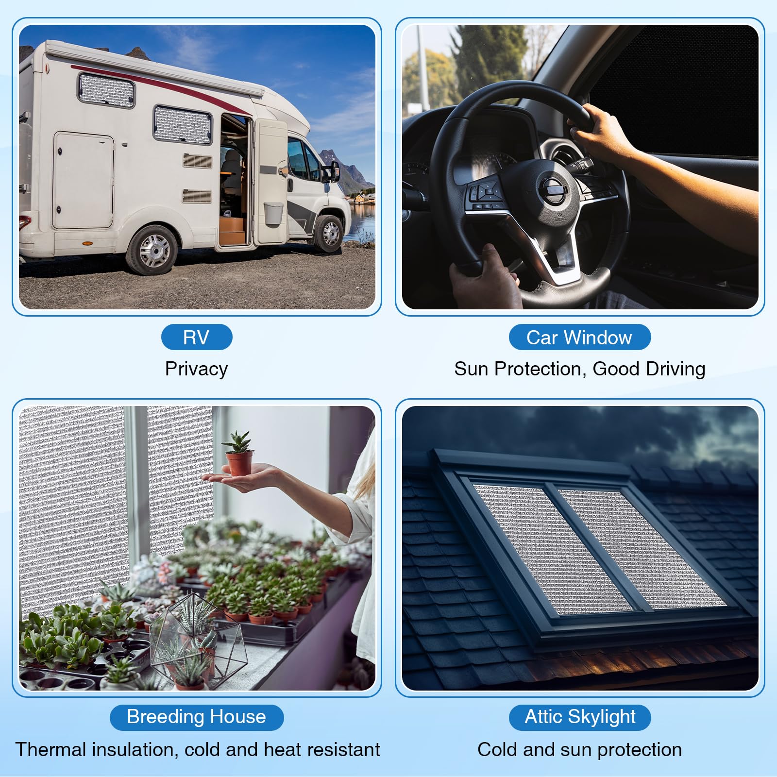 Good Performance: double aluminum foil has good sealing performance, not only blocks the sun but it avoid heat loss and keeps the room cool; This reflective insulation also acts as a barrier and protects your privacy with its opaque foil surface