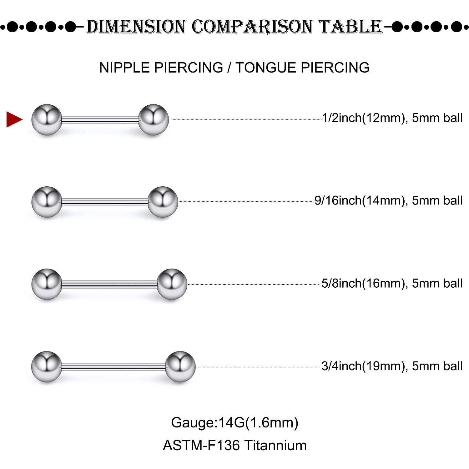 [Style]: 1 pairs Titanium Internally Threaded Straight Barbells Nipple Tongue Rings Piercing Jewelry.