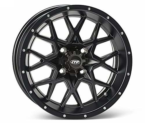 Bundle includes: (2) ITP Hurricane Matte Black ATV Wheel Front/Rear 14x7 4/110 (5+2) [1428636536B] + (2) ITP Hurricane Matte Black ATV Wheel Rear 14x7 4/110 (2+5) [1428637536B] + (1) Gorilla 10mm x 1.25" Lug Kit & Valve Stems - Chrome [K4CS-10125GR] The first ITP wheel in the new "Storm Series" product line, the Hurricane features eight sets of X-shaped wheel spokes and an ITP exclusive "Rock Armor" inner wheel lip to provide unequalled structural integrity. The Hurricane boasts a 1,200lb. load rating and is backed by the company's "Lifetime Structural Warranty." Is the Hurricane the strongest UTV wheel on the market today? We think so!" notes Rhett Turpin, ITP Powersports Director of Sales & Marketing. "Plus, no other wheel matches its unique, automotive-like center design. We think owners will really appreciate standing out from the crowd. (Depending on the machine your stock lug nuts may not work with this wheel. They MAY require a different style lug nut that we offer) Center cap included.This Wheel Full Set Includes:(2) ITP Hurricane Matte Black ATV Wheels Front/Rear 14x7 4/110 (5+2) [1428636536B] (2) ITP Hurricane Matte Black ATV Wheels Rear 14x7 4/110 (2+5) [1428637536B] (1) Gorilla 10mm x 1.25" Lug Kit & Valve Stems - Chrome [K4CS-10125GR]These Wheels will fit the following machines: Honda: Foreman 400 SRA (1997-2004) Foreman 450 SRA (1998-2004) Foreman 500 SRA (2005-2024) Foreman Rubicon 500 SRA (2001-2014) King Quad 400 (2008+)King Quad SRA (2010+)Rancher 350 SRA (2000-2006) Rancher 400 SRA (2004-2008) Rancher 420 SRA (2007-2024)Suzuki: Twin Peaks 700 (2004-2005) Vinson 500 (2002-2007)FITMENT NOTES: If you have any questions or concerns about fitment please contact us by email or phone BEFORE you order.This listing is for these machine models with a 4x110 Bolt Pattern and 10mmx1.25 Lug Kit.Tire clearance varies by specific machine. Most machines can go at least 1" larger on the tire diameter. Fitment for other machines is available - Browse our wheel