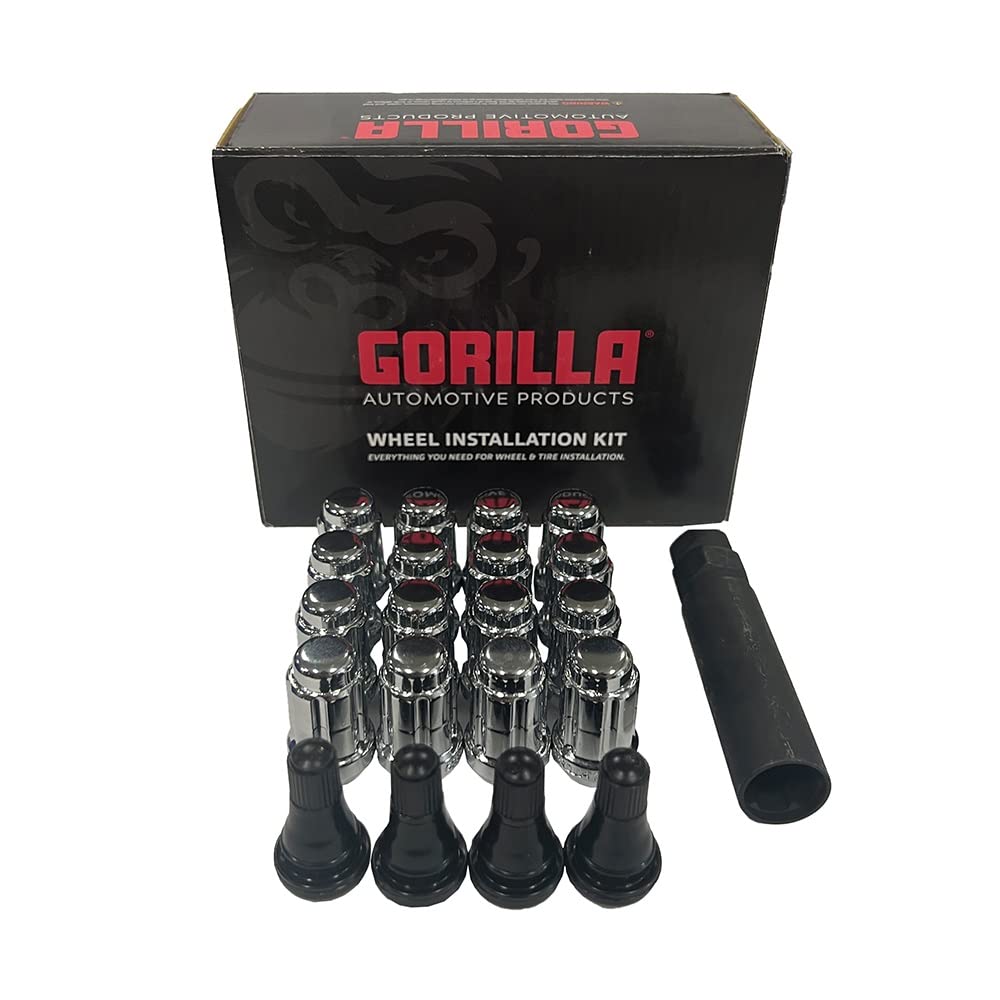 Bundle of: (2) ITP Hurricane Matte Black ATV Wheel Front/Rear 14x7 4/110 (5+2) [1428636536B] + (2) ITP Hurricane Matte Black ATV Wheel Rear 14x7 4/110 (2+5) [1428637536B] + (1) Gorilla 10mm x 1.25" Lug Kit & Valve Stems - Chrome [K4CS-10125GR]