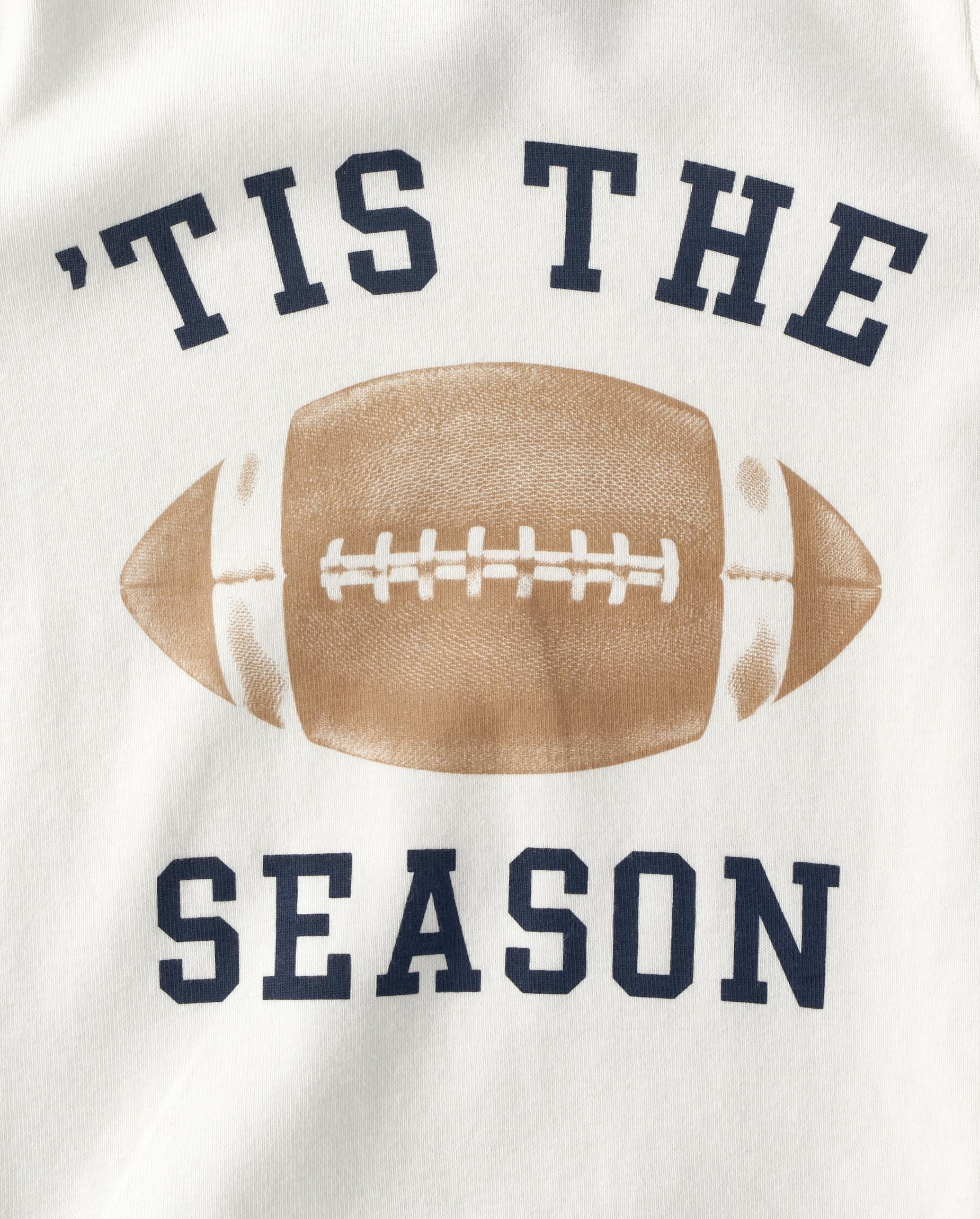 PAJAMA TOP — Features long sleeves with varsity stripes, rib-knit crew neck and sleeve cuffs and 'Tis The Season' with football graphic design at front