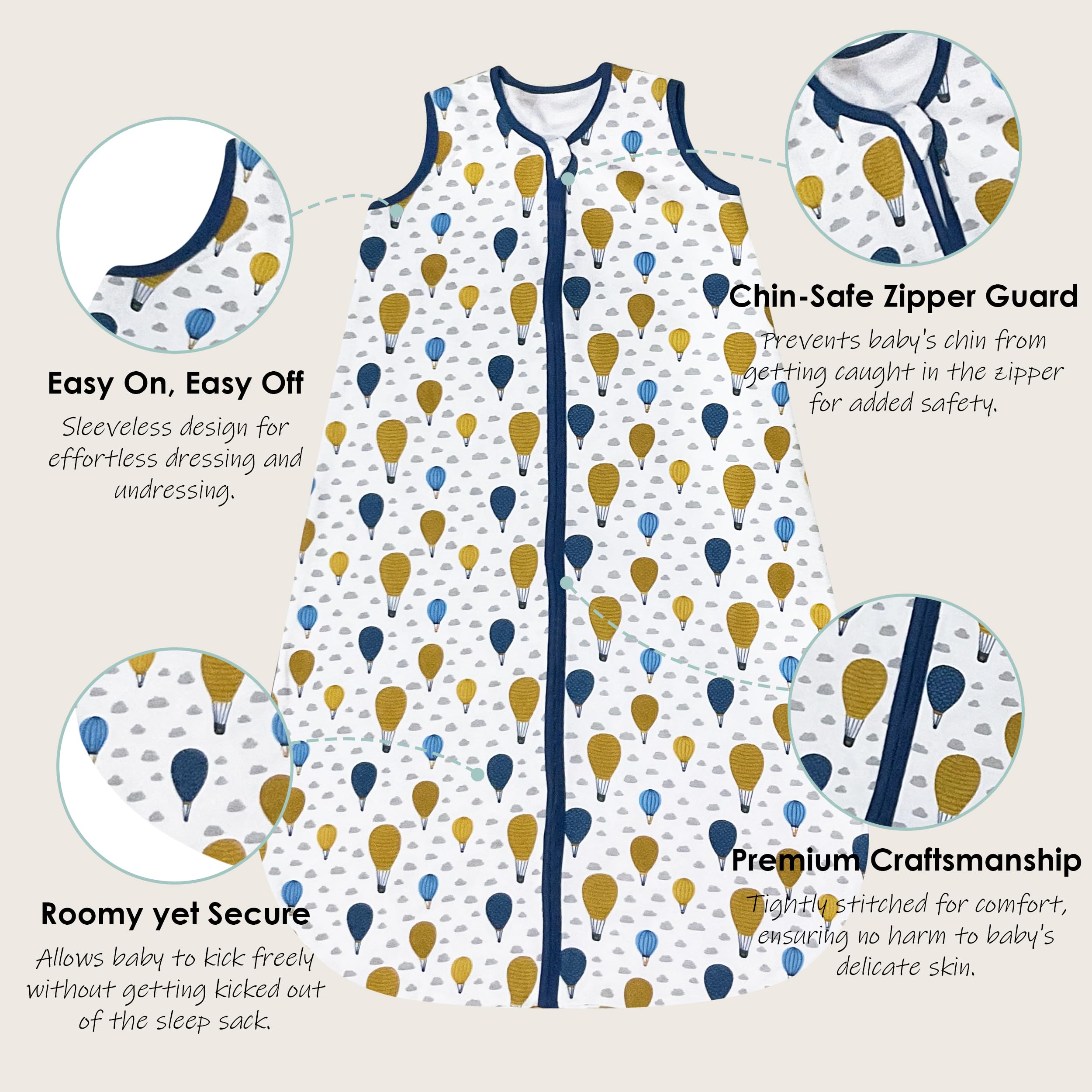 Luxuriously Soft: Crafted from premium 100% cotton, our baby sleep sacks offer unparalleled comfort and breathability. The sleeveless design and optimal TOG rating of 0.5 ensure your baby stays warm and snug without the risk of overheating
