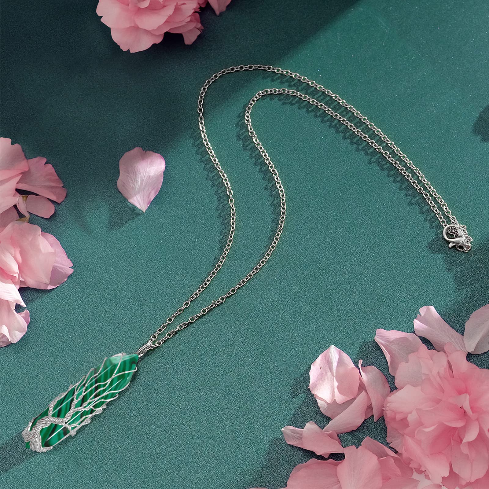 【TREE LIFE NECKLACE】The crystal pendant is wrapped by dainty tree of life, which symbolizes positive energy, growth, wisdom,knowledge and strength, rebirth, a bright future, longevity, good health, and a fresh start on life. It also symbolizes family through its intricate network of branches. Each crystal Pointed pendant is made of natural energy stone, and the color will be slightly different. Please refer to the actual product received.