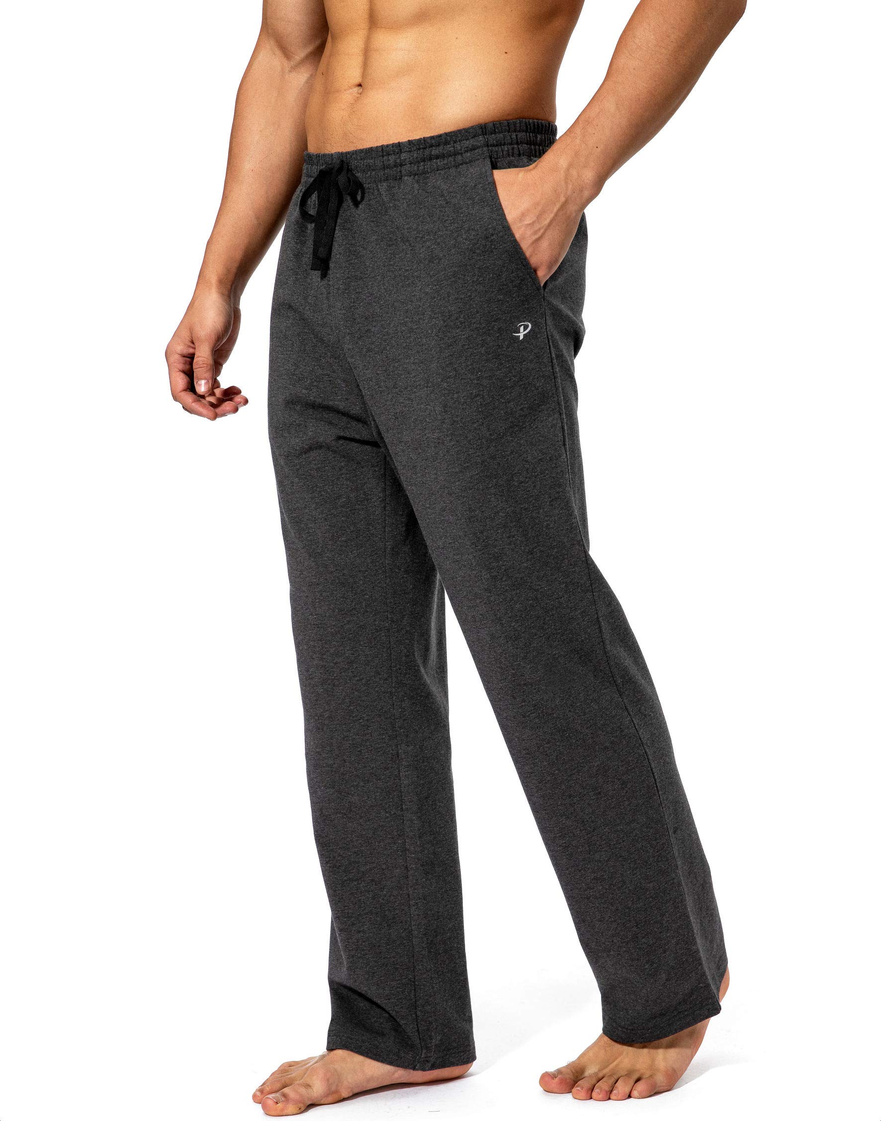 Pudolla Men's Cotton Yoga Sweatpants Athletic Lounge Pants Open Bottom Casual Jersey Pants for Men with Pockets (Charcoal Large)