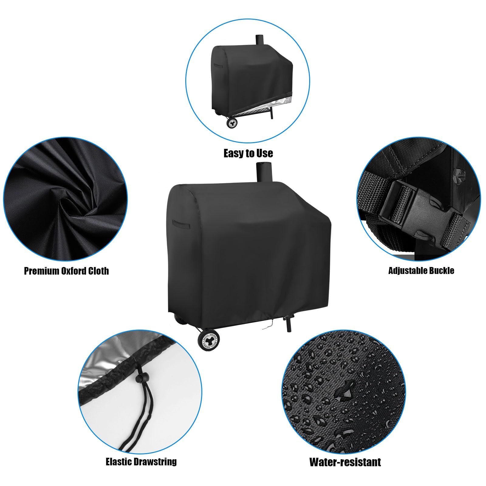 Drawstrings and Buckle: Elastic cord allows the cover to fit better with the grill. Adjustable buckle on the grill for better extra stability, so you don't have to worry about the impact of windy weather