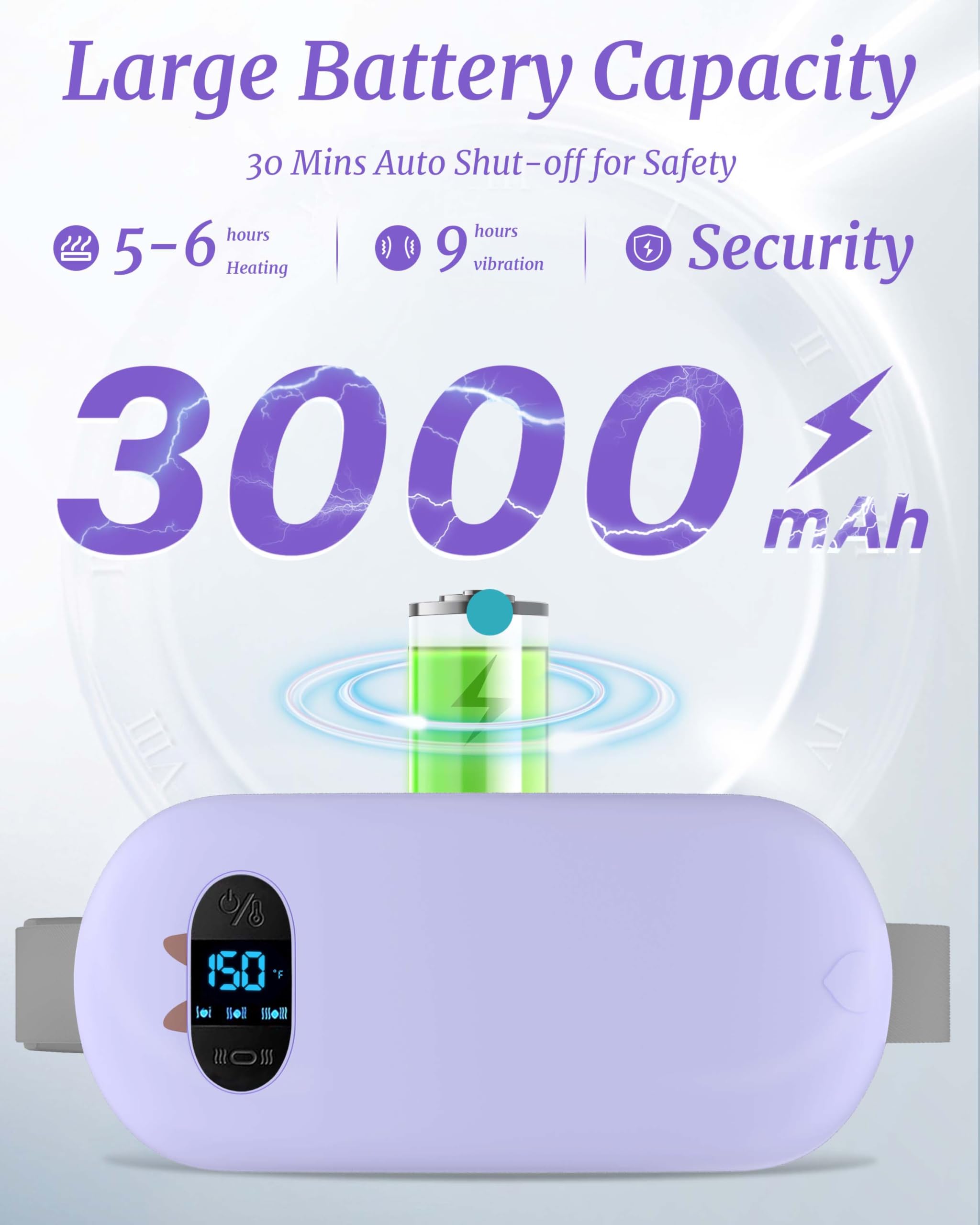 Smart LED Display: You can check the remaining battery percentage, heating mode temperature, and vibration level on the LED display which is much more convenient than the regular small heating pad with only button control.