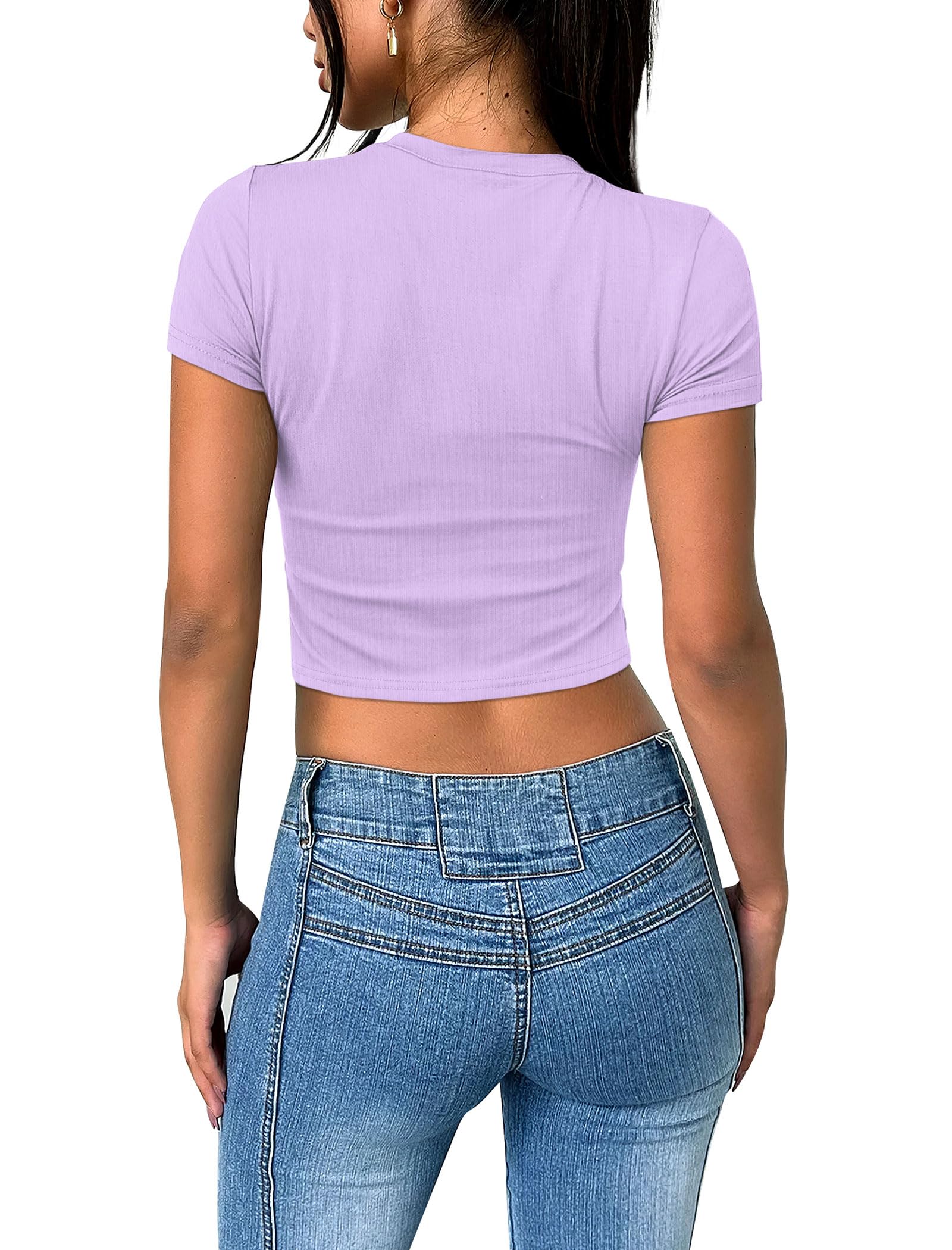 Y2K Design: This top features a cute, slim-fitted, and casual style with a crew neck and short sleeves. It comes in both cropped and regular styles, giving you the option to wear it as a regular top or fold it up for a trendy crop top look. Whether you're dressing up for a night out or going for a casual look, this top is perfect for any occasion.
