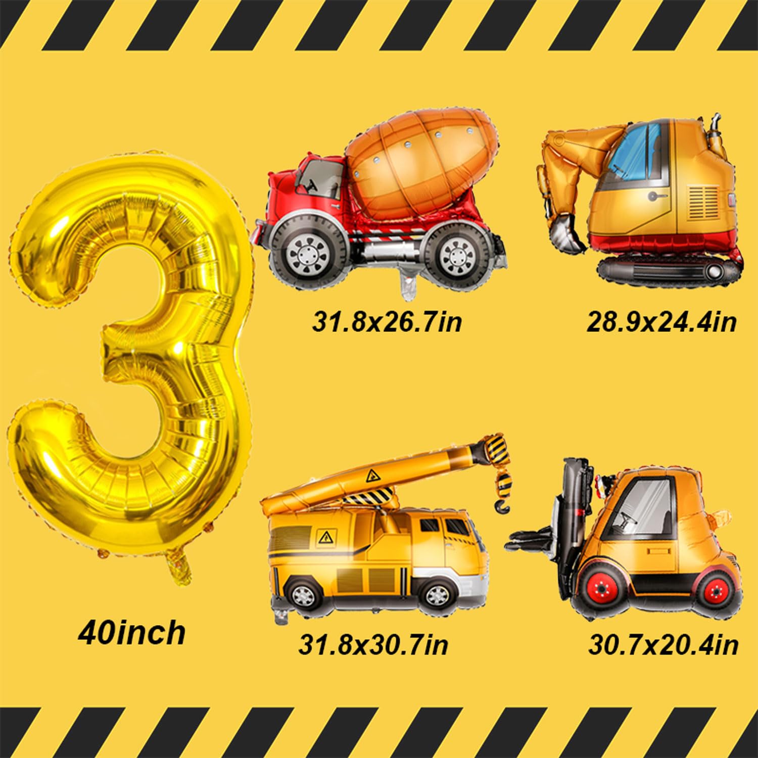 【High Quality and Safety Material】Our 3 year old birthday decorations boy construction balloons made of high-quality aluminum foil mylar material, which can stand the long-hour display and reusable, Non-toxic and harmless for construction theme birthday party.