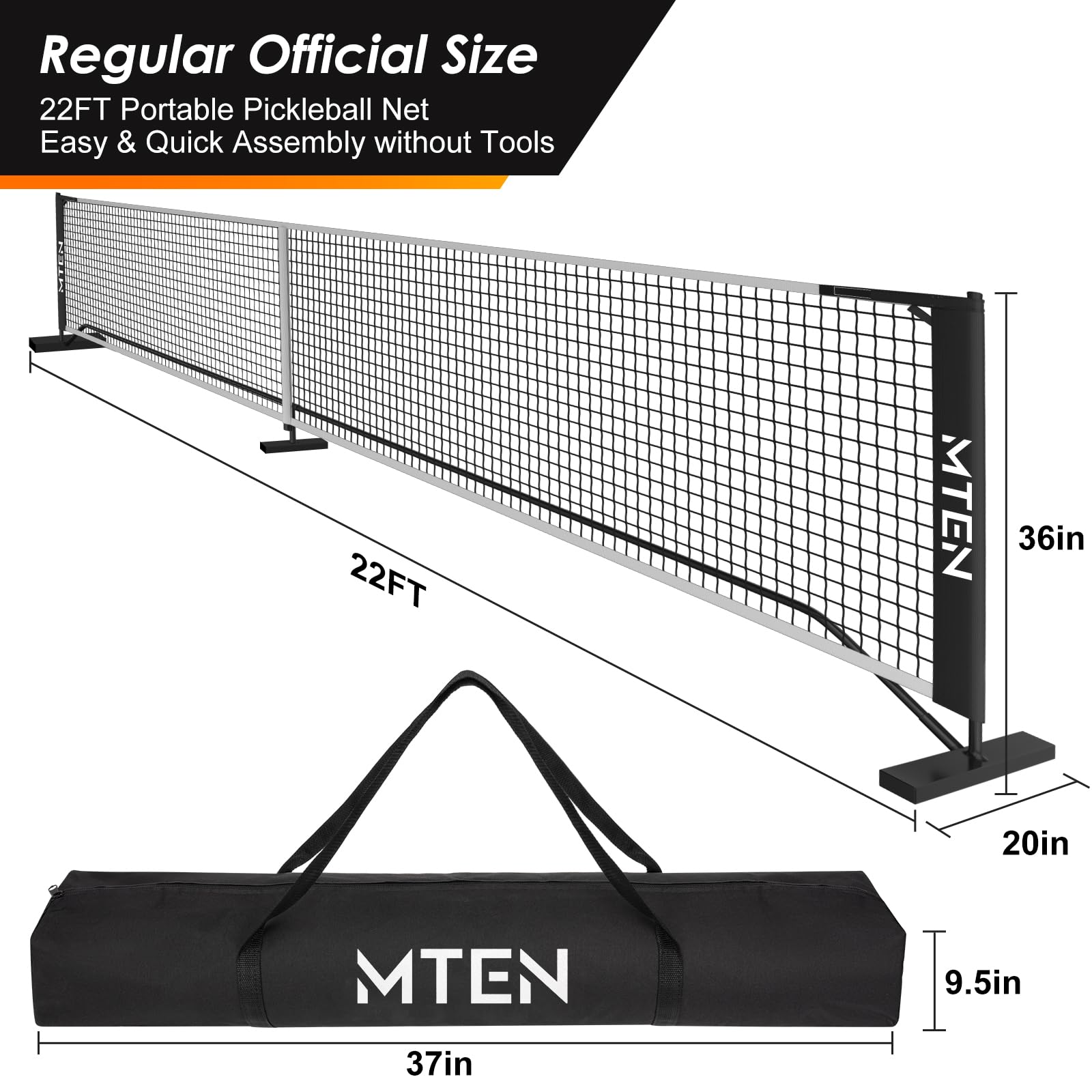 USAPA regulation official size: Our pickleball net meets official USAPA regulations, standing 36 inches tall at the sidelines and 34 inches at the center. With a length of 22 FT, it perfectly spans the court for regulation play