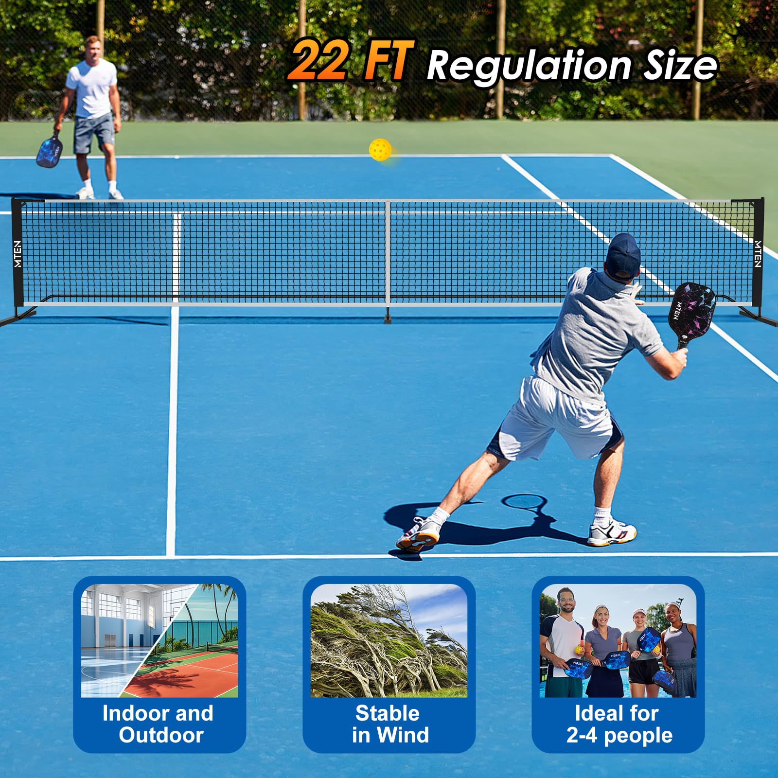 22ft pickleball net set: Perfect for teens, families, casual players, and professionals, this outdoor pickleball net is an excellent choice for practice, training, and recreational play