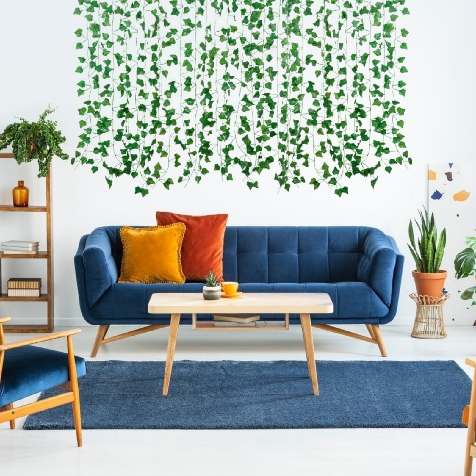 [Uses of ivy garlands]:Suitable for indoor and outdoor decoration, including living room, bedroom, staircase railing, sofa background, wall hanging, party, wedding, garden, swing, balcony, birthday, banquet, air conditioning duct, water pipe, and any other scenes and parts, and also can be used with LED lights for better effect.