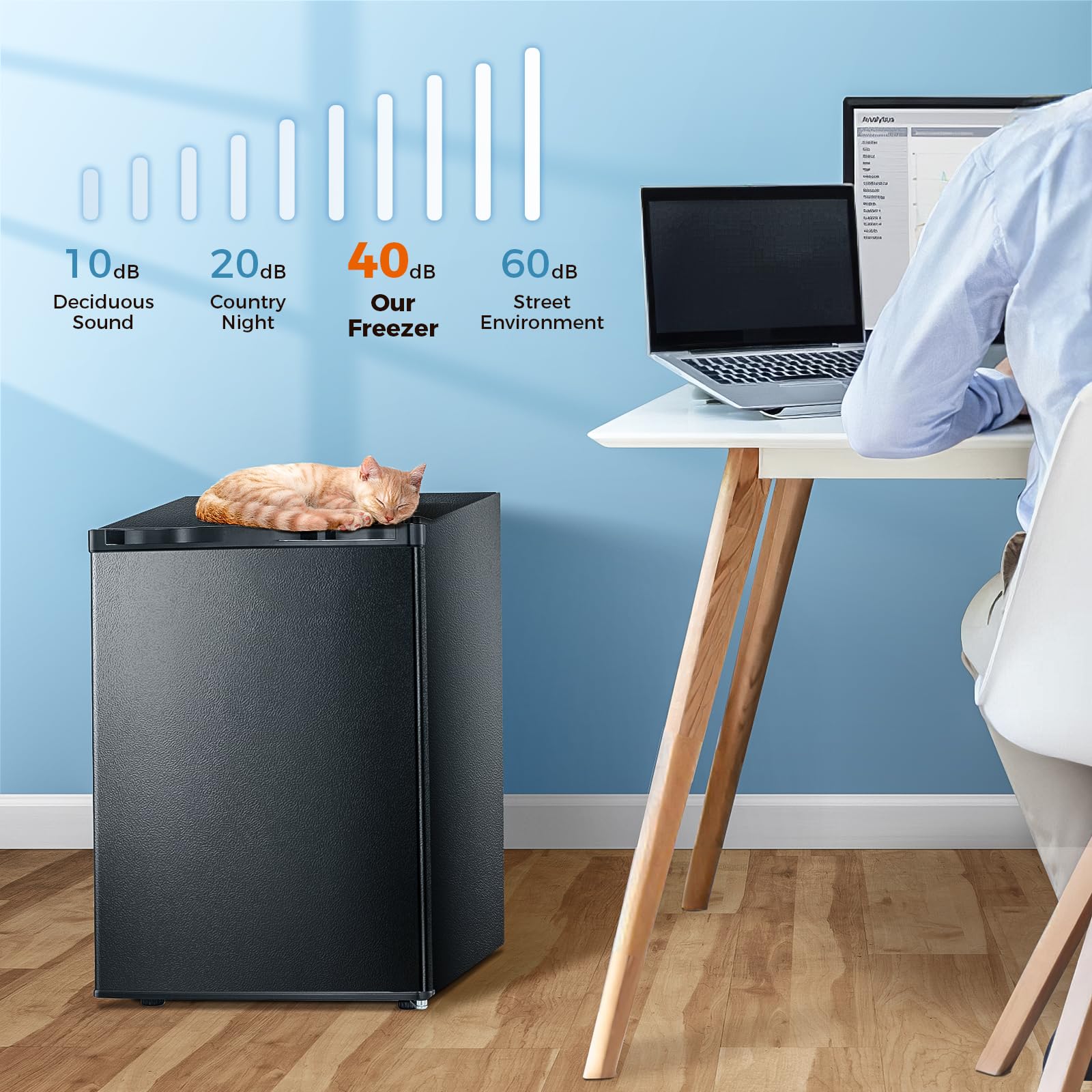 Energy-Saving & Low Noise: Using high efficiency and low energy consumption compressor, this freezer can cool quickly. Only 0.6 kilowatt-hour power needed per day,more power-saving compared to other products of the same type In addition, noise below 40 db,can be placed in the bedroom without disturbing your sleep even on quiet nights