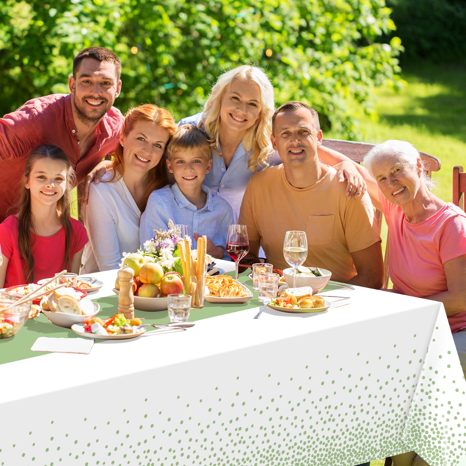 Large size:these plastic white and sage green rectangle tablecloth measures approx. 137x274cm/54X108 inch, which fits for 8 feet long tables that can accommodate 8-10 people, It’s large enough for your to hold a theme party with your family and friends to share happiness