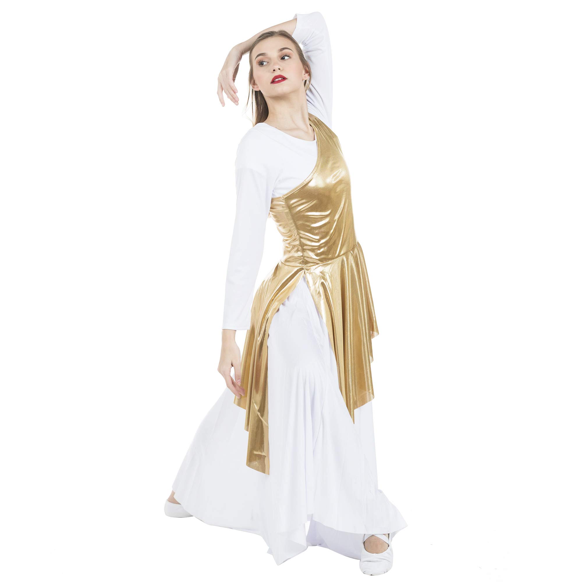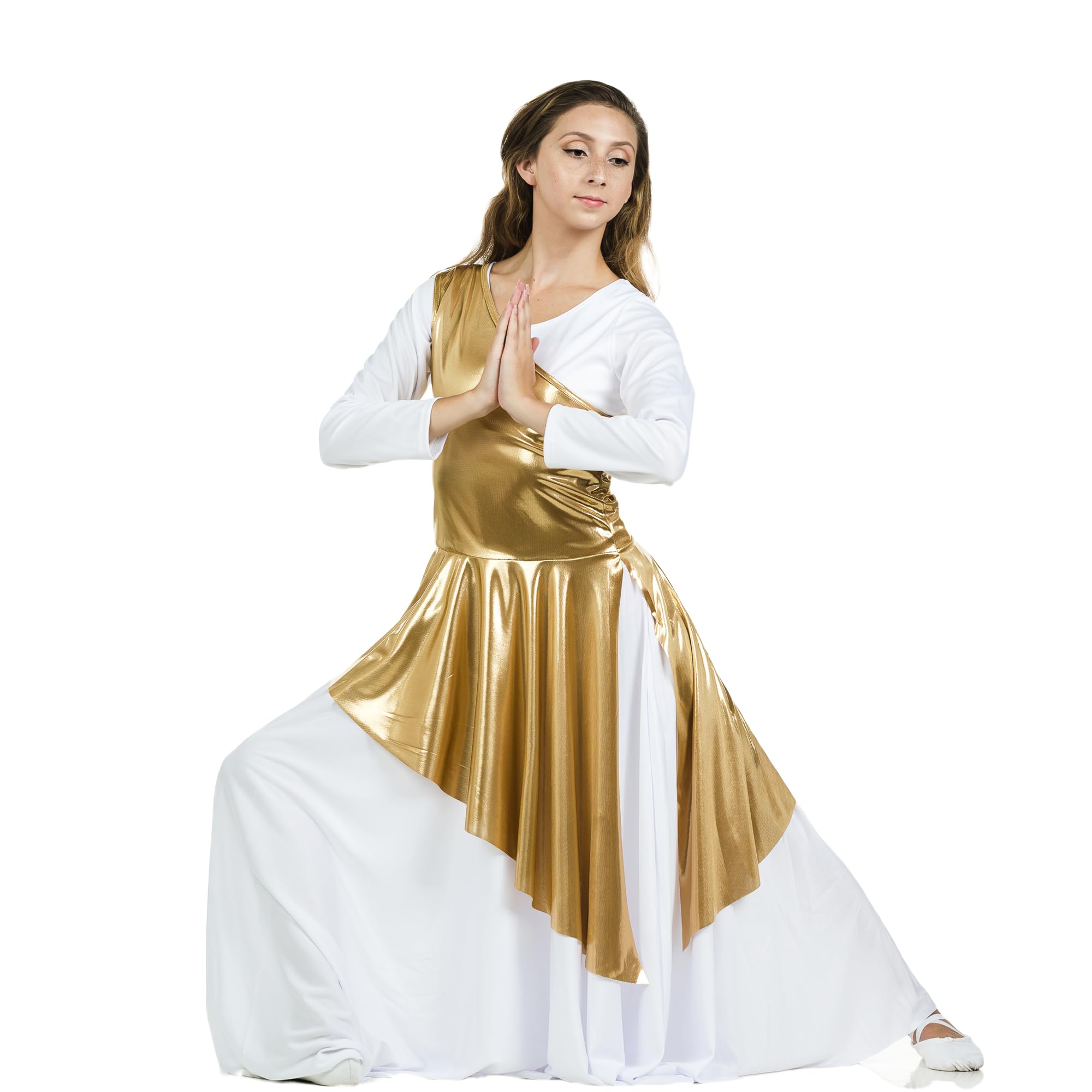 Dance Overlays for Worship Women Design Features: The unique asymmetrical design makes this praise dance tunic perfect for any praise dance dress for a layered look or to add different colors to an outfit. The side slit design not only facilitates your dance moves and allows your legs to move freely, but also adds to the overall dexterity and layering.