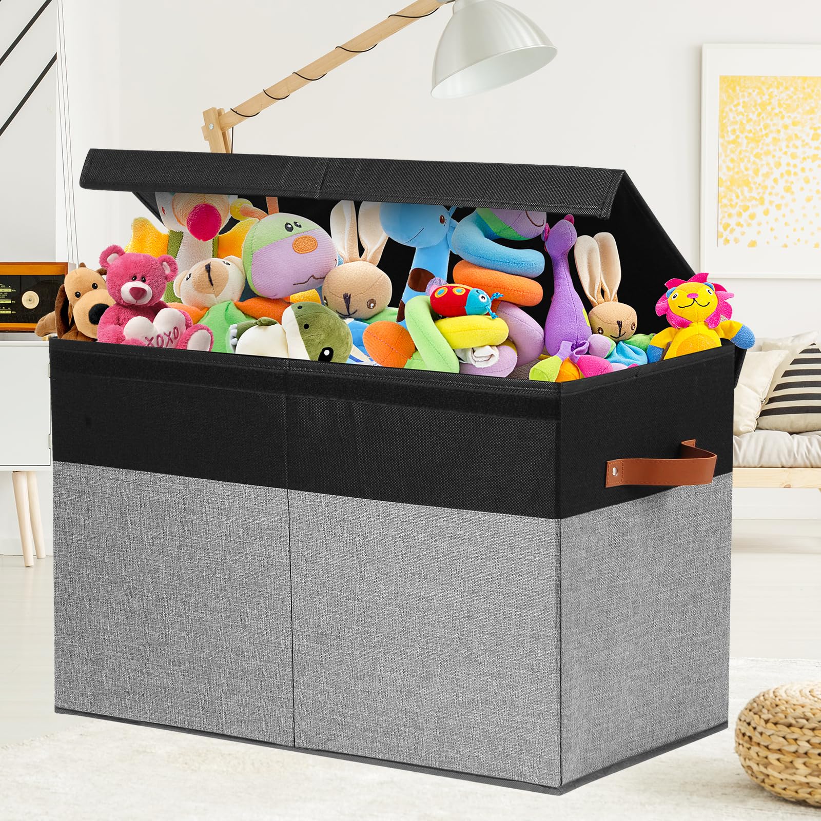 LARGE TOY BOXES - The size of toy chest is 25 x 13 x 16 inches (62.5 x 33 x 40 cm), capacity more than 83 liters, large enough for large stuffed animals toys dolls. it Contrasting color design adds more beauty to your home’s decoration