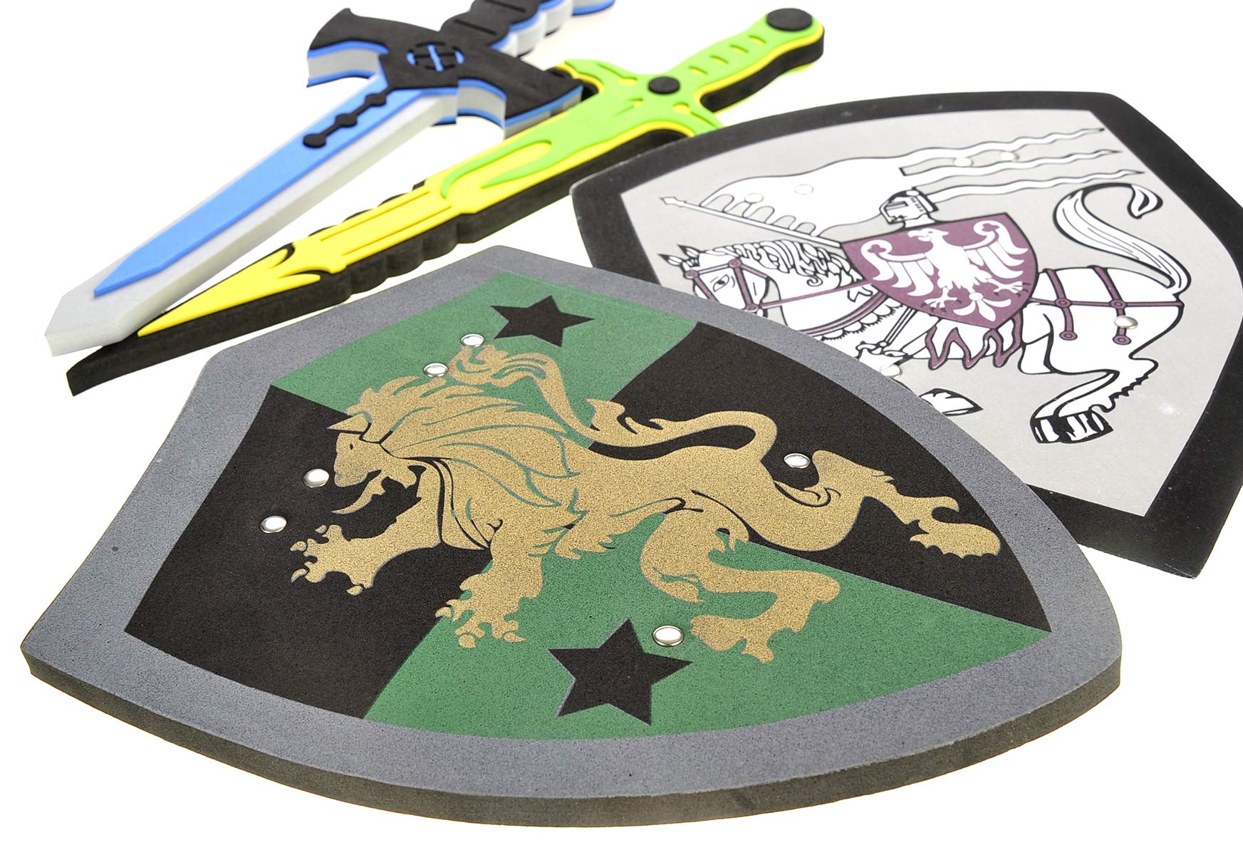 Knights Of The Foam Table | The sword and shield play set comes with two unique foam swords and unique shield designs. Durable for extended play and sturdy for quality play.