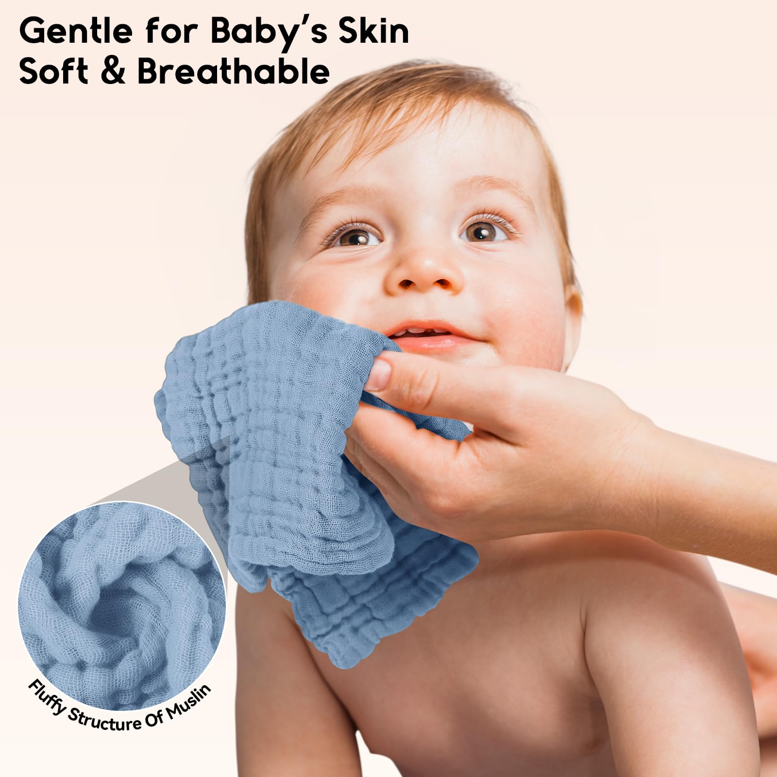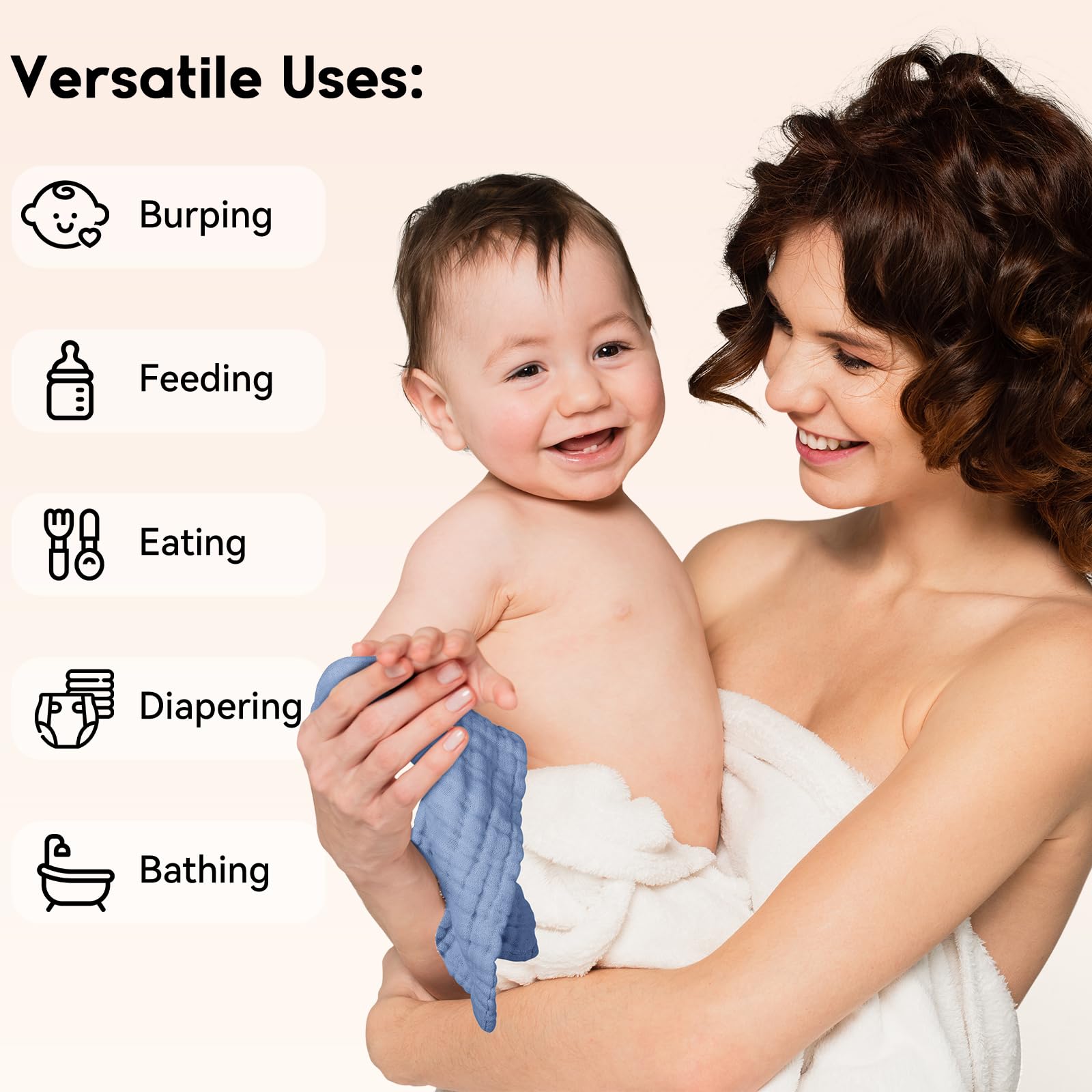 Verstile Baby Essentials: Designed with a gender-neutral color, our muslin washcloths will be a thoughtful present for any occasion like baby shower, baby registry, birthday, or you can use it as baby face towels, hand towels, baby wipes, burp cloths, sweat cloths, even makeup removers. A must-have for teething baby and mess no more.