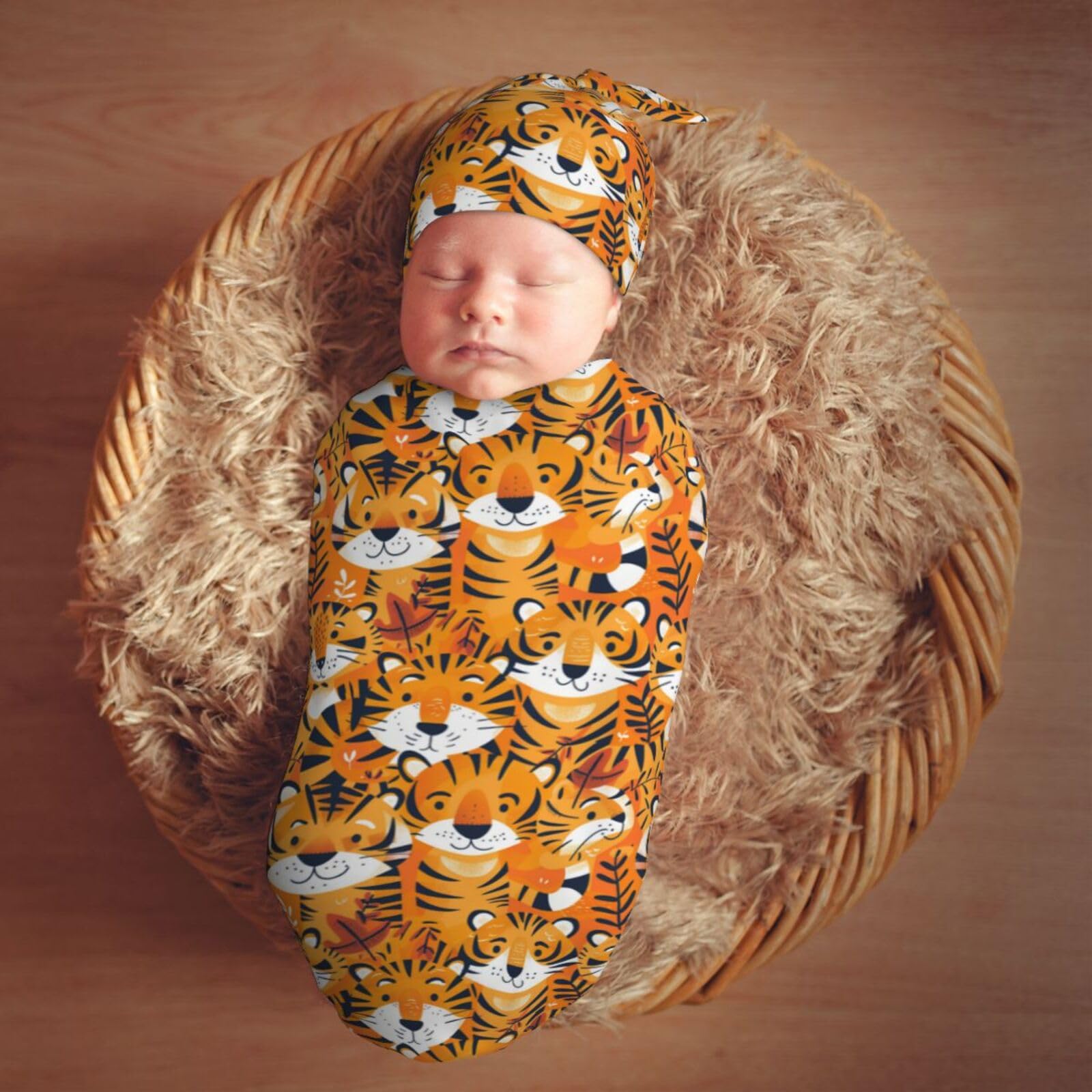 Size: Swaddle Blankets For Baby Boy/Girl Size: 20.8" X 11.4" ; And The Beanie Hat Size: 13"X6.5" . Funny Cute Tigers Swaddle Blankets Is For 0-6 Month Babies.
