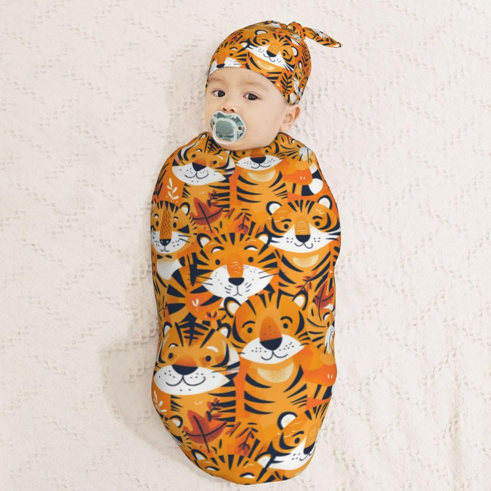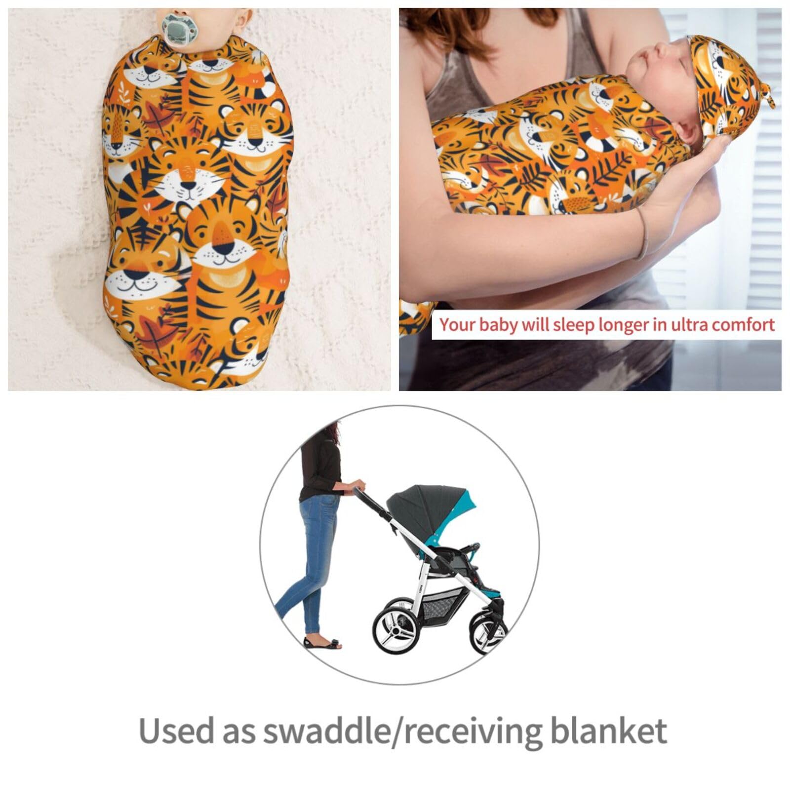Material: This Who Love Funny Cute Tigers Newborn Baby Swaddle Blanket And Baby Hat Set Is Made Of High-Quality Polyester, Which Is Very Soft And Skin-Friendly, Swaddle Bags Blanket Has Good Warmth And Elasticity, Keeps Your Baby Perfectly Wrapped, Cozy, And Sleeping Peacefully.