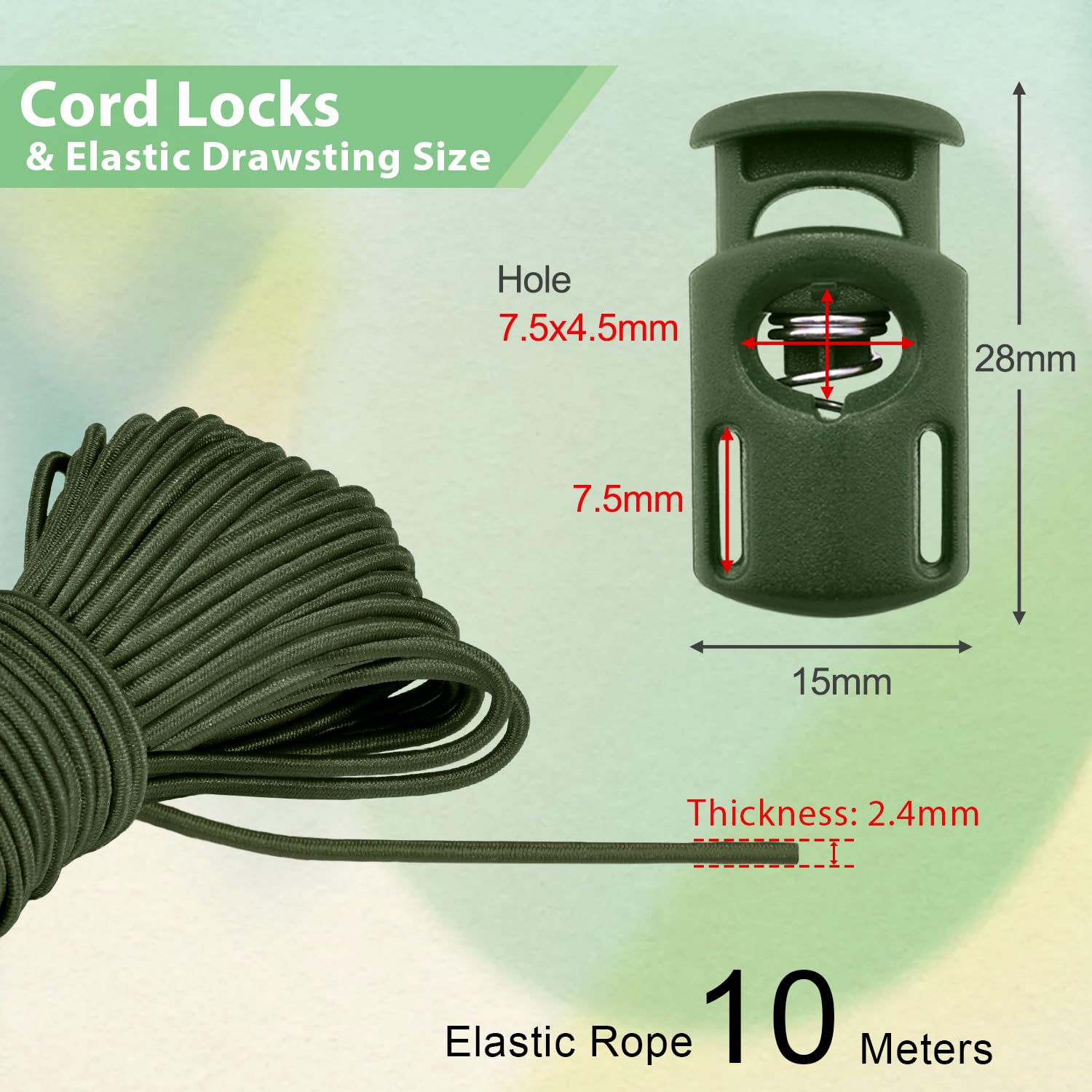 Included: 10 Meter 3 mm Elastic Cord and 25 pcs Cord Locks