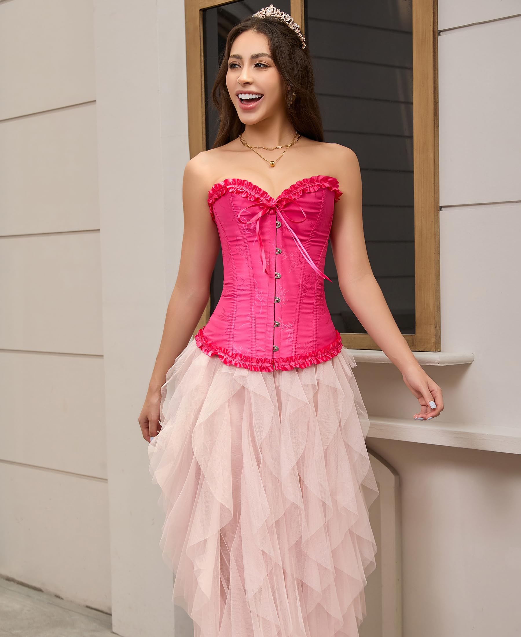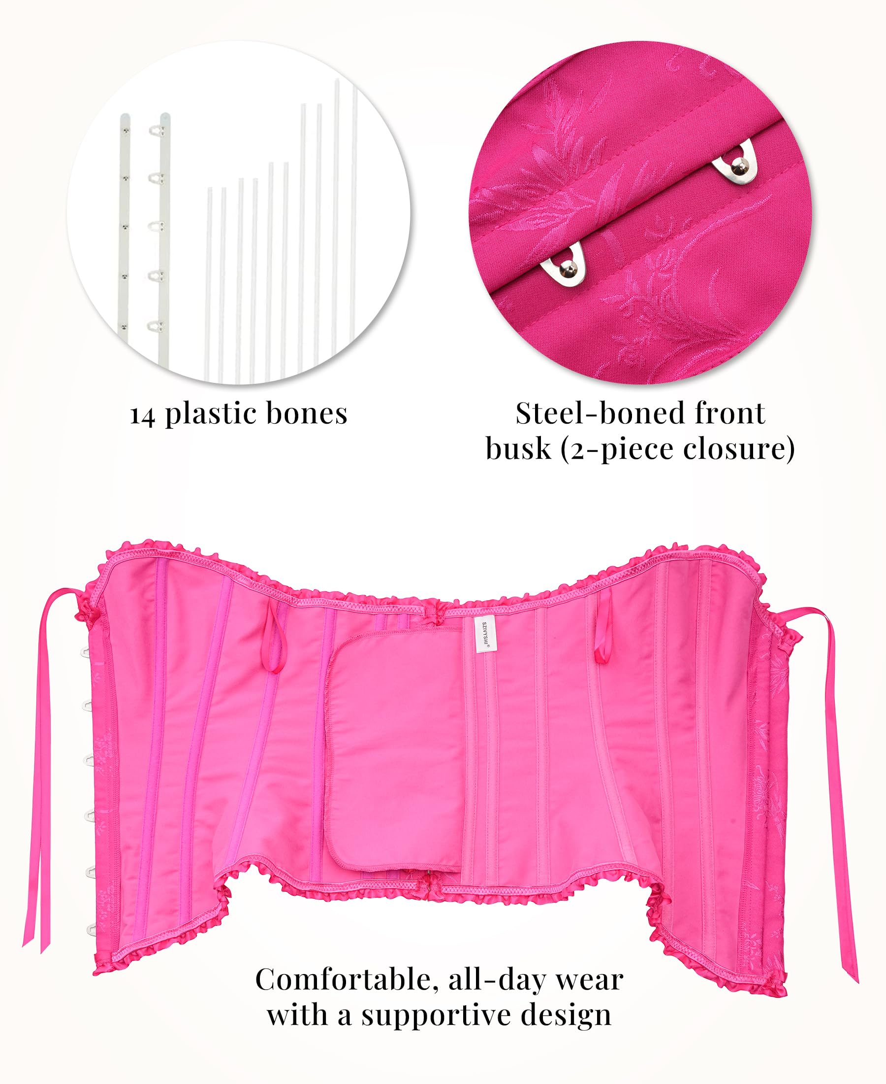 COMFORTABLE TO WEAR ALL DAY: Corsets are made with soft fabric that will mold around your body, making them comfortable for all-day wear! Our corsets for women are designed to be lightweight, breathable, and cozy so you can move in them freely. This bustier top supportive 12 plastic bone structure will help hold your spine upright so you look better and stay more energized. A waist corset will make you feel comfortable and confident in your body.