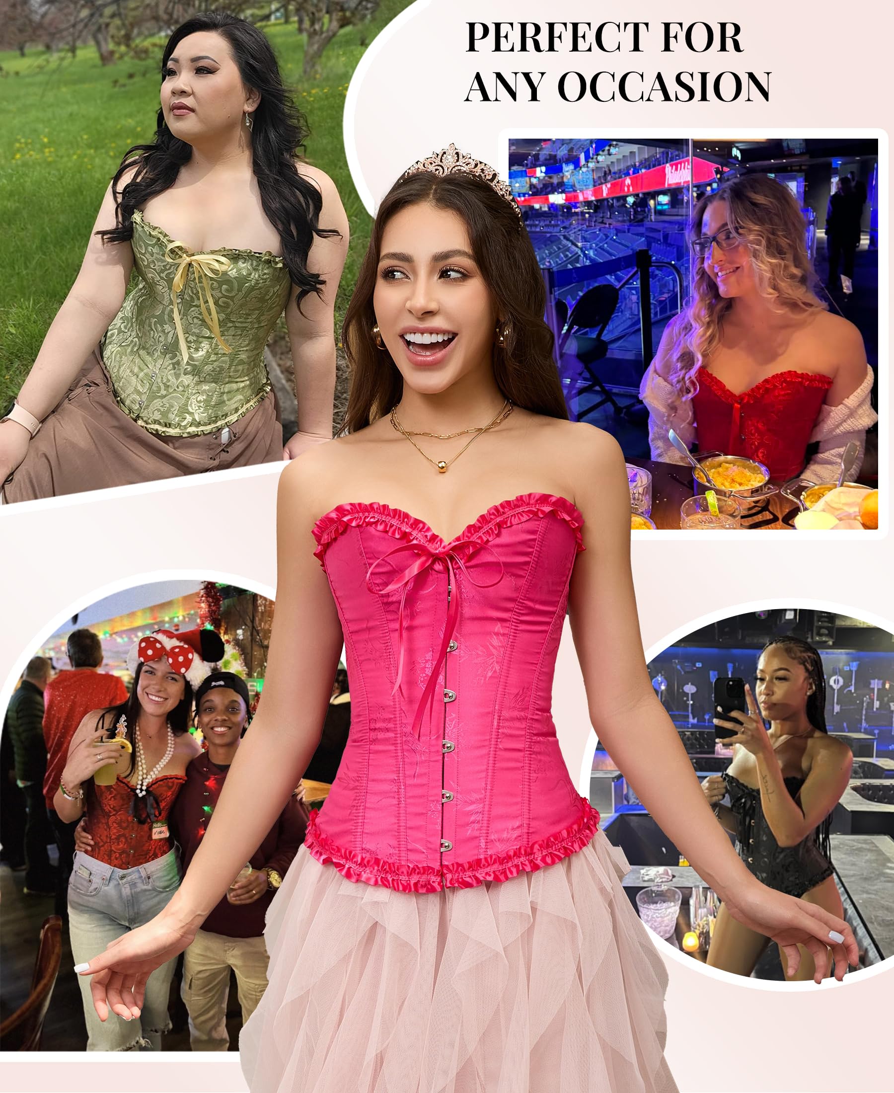 PERFECT FOR ANY OCCASION: The corset tops for women fashion night out are the ideal accessories for any event! You can wear this corset for women with anything from a dress or skirt to casual jeans. That waist trainer corset will make you look stunning on any formal occasion. You can put on corset lingerie with your favorite dress, and be sure that everyone will take notice! This corset lingerie for women is perfect to wear on its own or paired with another garment as a seductive nightwear.