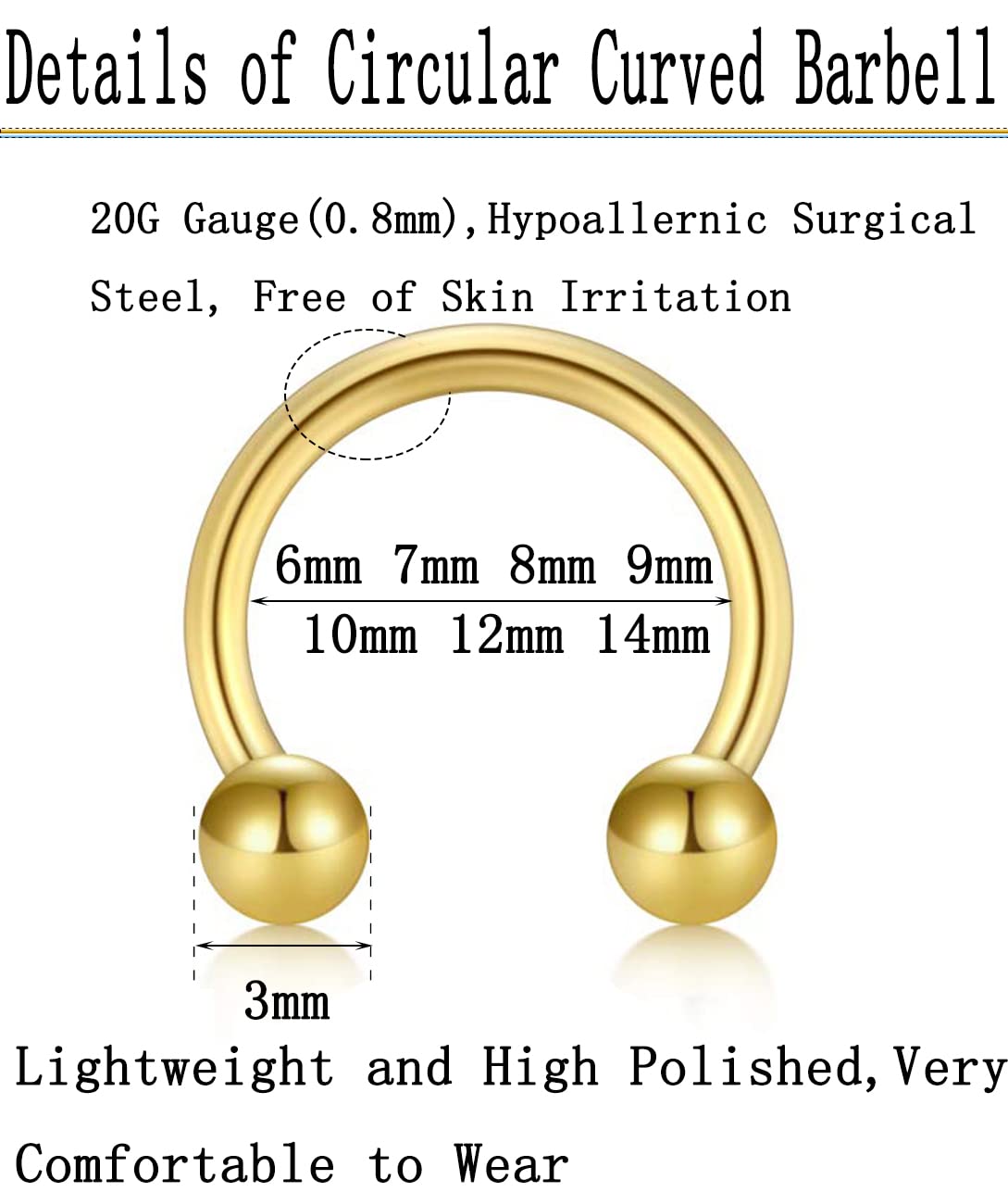 1. 【7 PAIRS of 16G HORSESHOE RINGS SET in DIFERENT SIZES】Regular gauged: 20Ga/0.8mm, Ball size : 3mm, Inner diameter of hoops from 6mm, 7mm, 8mm, 9mm, 10mm, 12mm and 14mm; Different size of small body piercing jewelry multipack for multiple pircing, Good chioce for septum, smiley, nose, nostril, lip and labret piercing, Also practical as cartilage earrings, helix earrings, tragus earrings, rook earrings and daith earrings