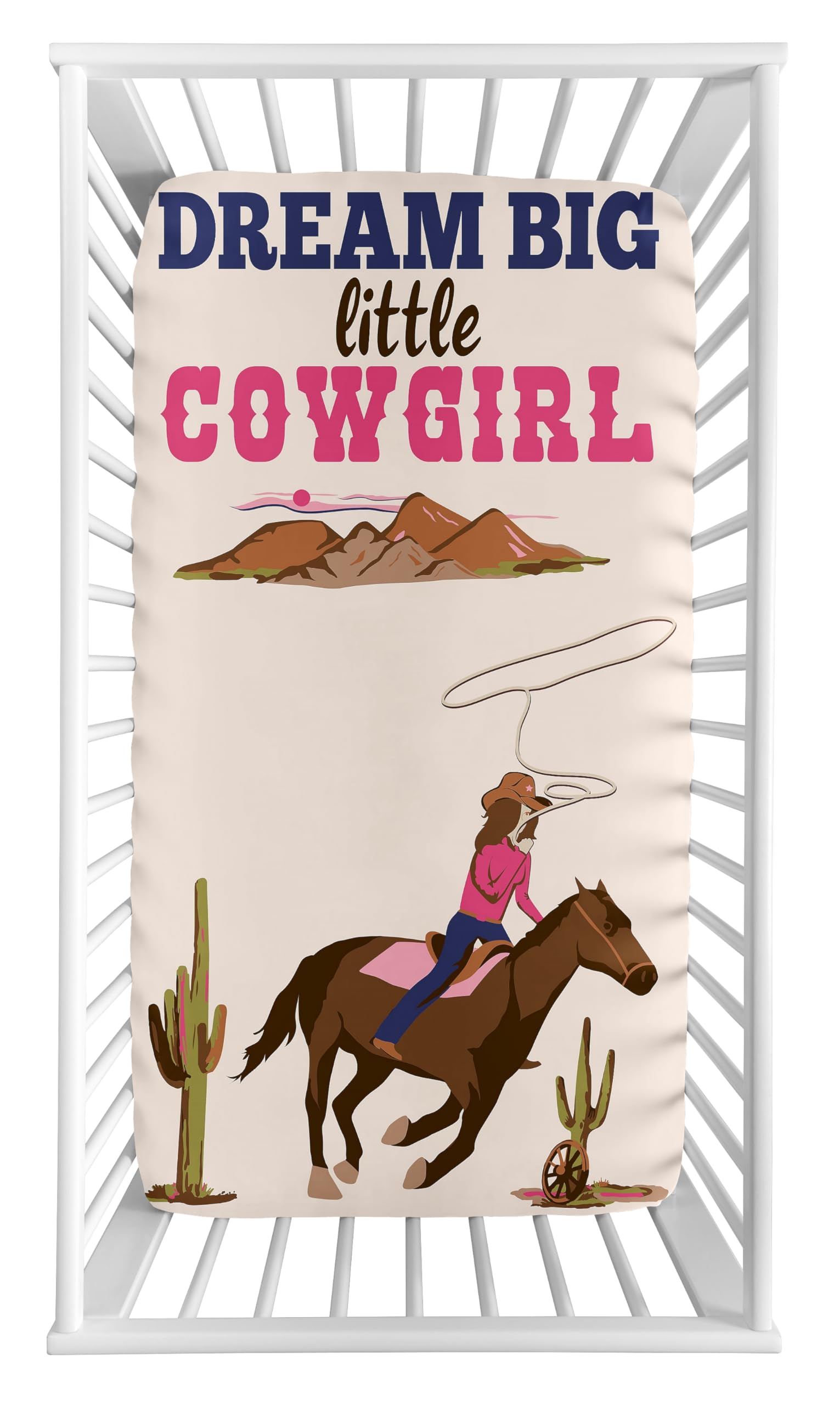 Brushed Microfiber - Light Pink, Brown, Beige, Blue, Cream, Taupe, Tan and Off White "Dream Big Little Cowgirl" Wild West Vintage Country Retro Animal Horse Southwest Western Photo Op Print.